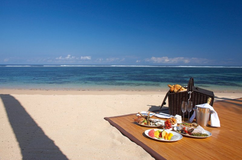 Samostatnou kapitolou jedálnička sú ryby a morské plody, ktoré sú na Bali vždy čerstvé a delikátne. Cenová dostupnosť je veľmi dobrá: 1kg homár príde na cca. 500.000 Rp, krab cca. 150.000 Rp, steak z tuniaka cca. 60.000 Rp. Hotelové komplexy mávajú špecializovanú reštauráciu, v ktorej podávajú len pokrmy z rýb a morských živočíchov.