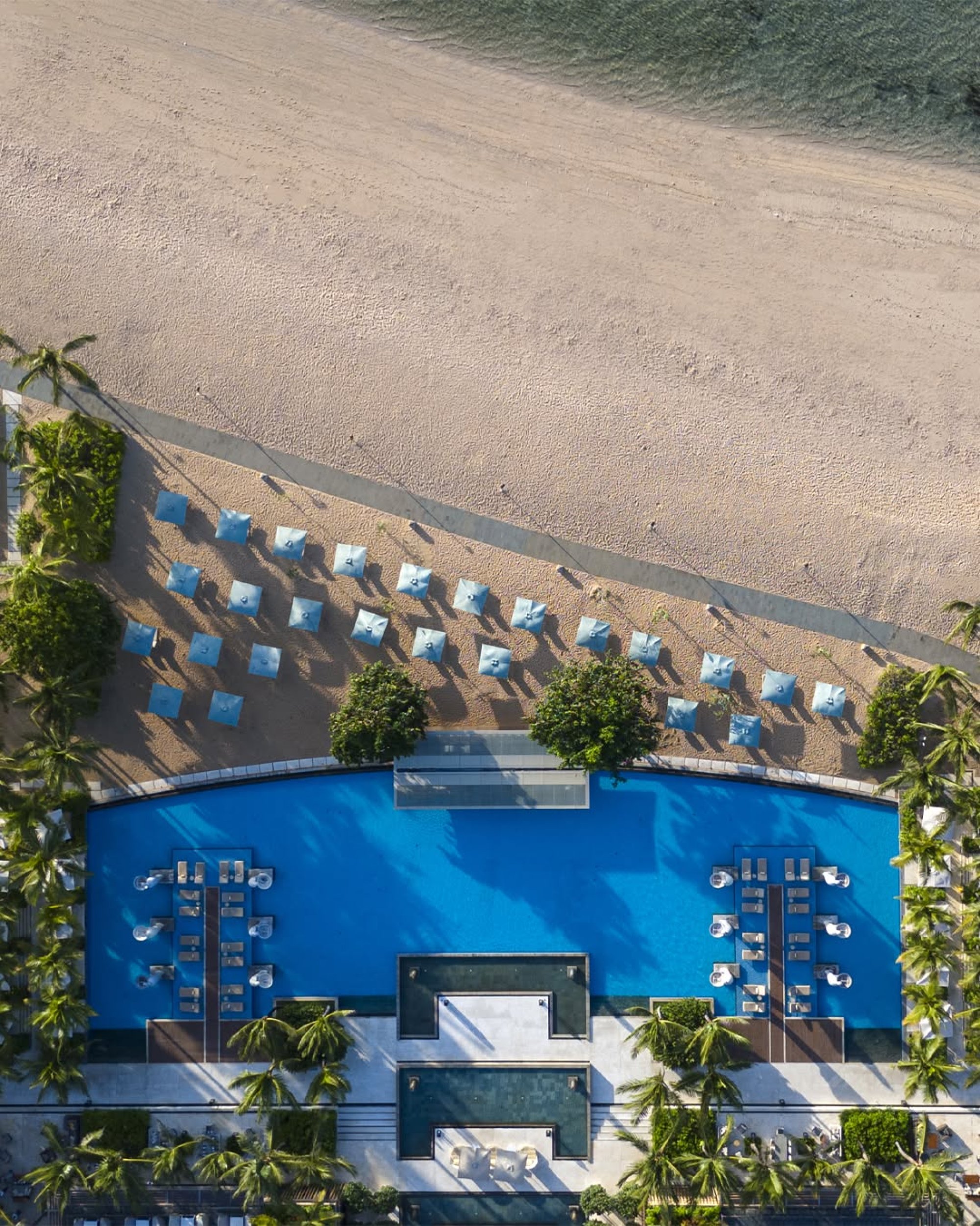 Oasis Pool – Pro hosty The Mulia a Mulia Villas je k dispozici exkluzivní nekonečný bazén s výhledem na oceán a soukromými přístřešky.