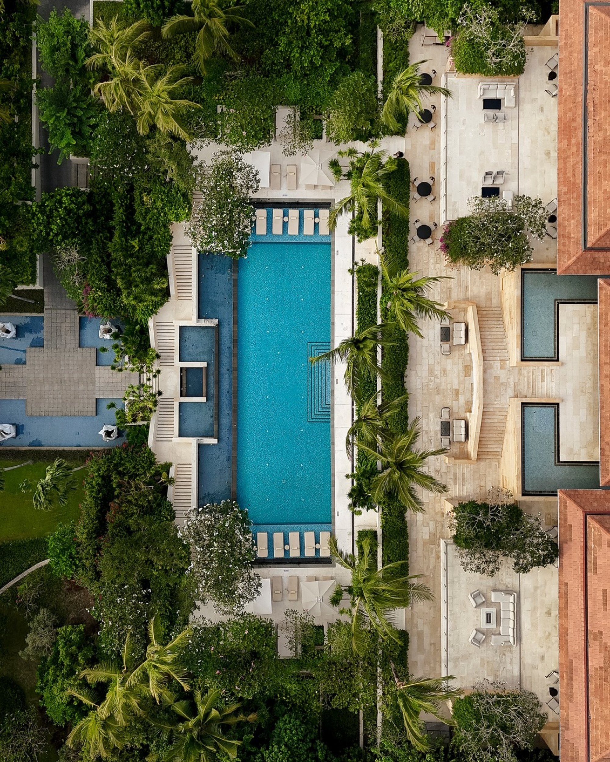 Courtyard Pool – Je umístěný v srdci Mulia Resort a obklopuje ho tropická zahrada s množstvím lehátek.