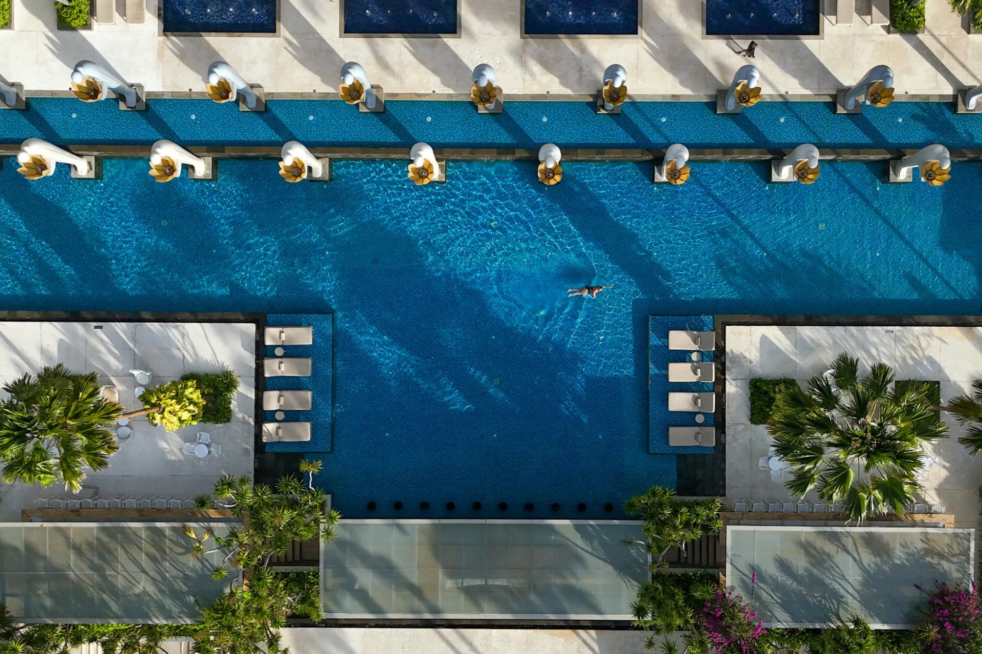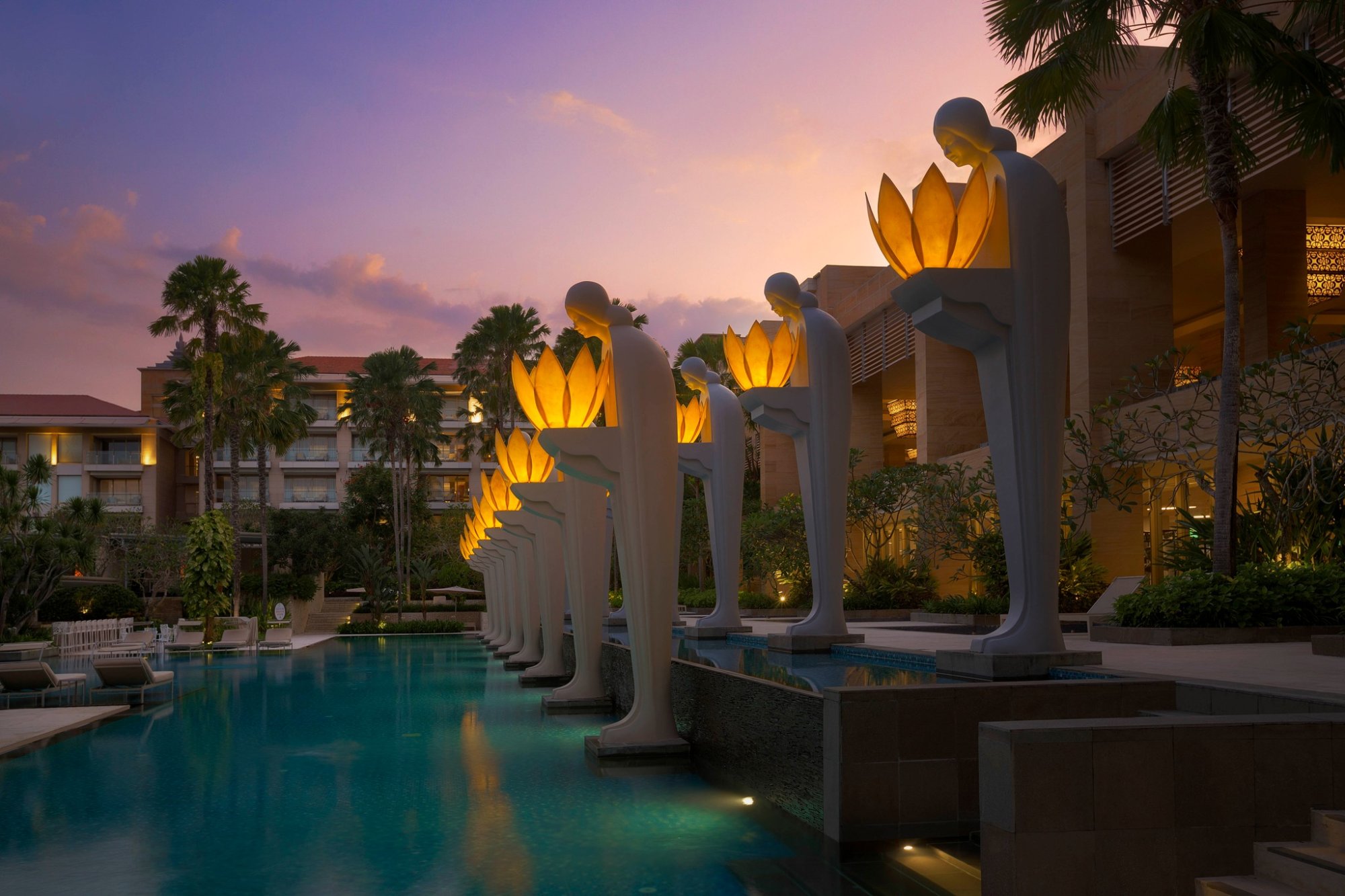 Ladies Courtyard Pool – Tento bazén se nachází v centru Mulia Resort a zdobí ho balijské sochy žen nesoucích květiny.