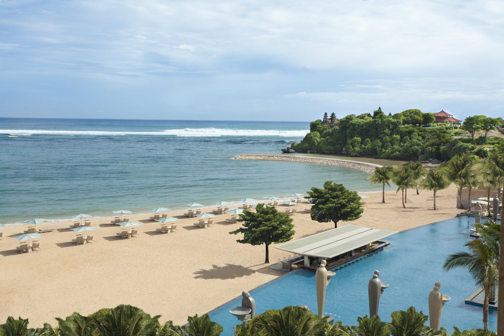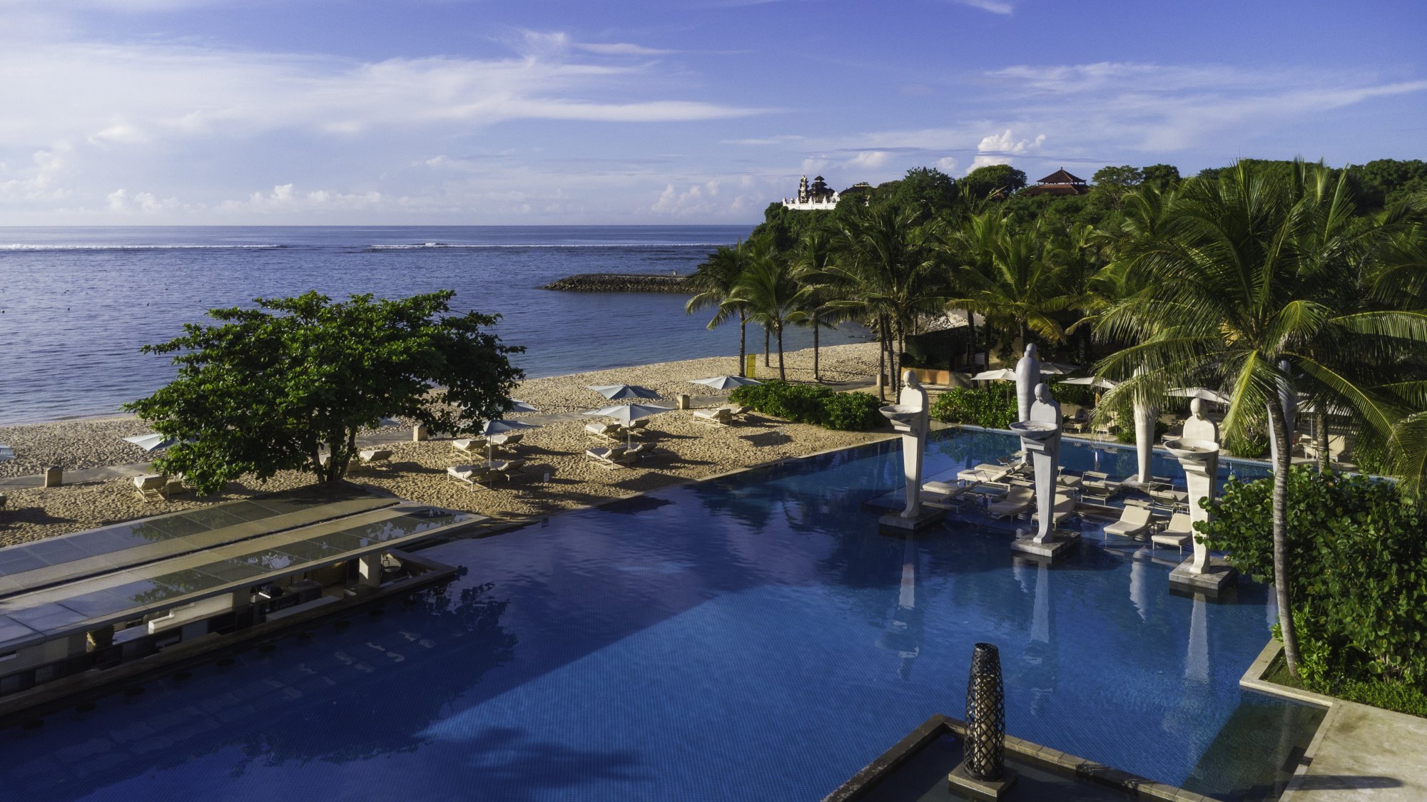 Oceanfront Pool – Nachází se přímo u pláže Geger a lemují ho úchvatné balijské sochy spolu s množstvím opalovacích lehátek.