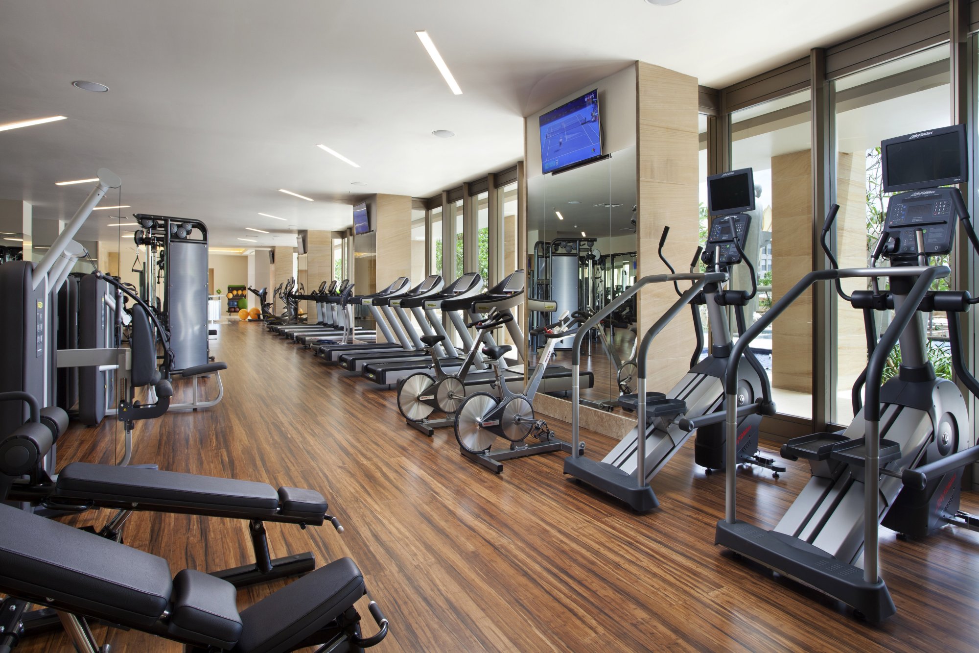 Hotelový komplex Mulia Bali nabízí spoustu příležitostí k relaxaci i aktivnímu odpočinku. Najdete tu plně vybavenou posilovnu (6:00–20:00) s bezplatnou nabídkou fitness lekcí, specializované pohybové studio a dva tenisové kurty (7:00–20:00). Kromě toho se můžete těšit na skupinové i soukromé lekce jógy, řízené meditace, TRX a HIIT tréninky, lekce pilates a aqua aerobiku, jízdu na paddleboardu a nejrůznější plážové sporty.