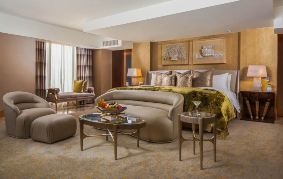 Užijte si bezkonkurenční luxus v podobě tohoto velkolepého apartmá (199 m²), z něhož vyzařuje nadčasová elegance. Interiér zahrnuje hlavní ložnici, která disponuje manželskou postelí, odděleným obývacím prostorem a koupelnou s dešťovou sprchou, volně stojící vanou a přístupem k soukromé vířivce, druhou ložnici se dvěma samostatnými lůžky a koupelnou vybavenou dešťovou sprchou, rozsáhlý obývací pokoj pro společné setkávání, samostatnou jídelnu s toaletou pro hosty a oddělenou kuchyňku pro osobního komorníka a šéfkuchaře. Prostorná terasa je vybavená pohodlným posezením, venkovní postelí, jídelním stolem a vířivkou, odkud se můžete kochat panoramatickým výhledem na oceán. Kromě toho se můžete těšit na dva soukromé balkóny a odpolední čaj s koktejly a kanapkami v salónku The Lounge nebo Living Room. Maximální kapacita: 4 dospělí.