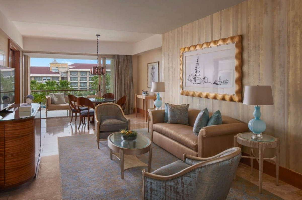 Z tohoto luxusního apartmá (296 m²) se nabízí panoramatický výhled na oceán a chrám Geger. Můžete se těšit na prostornou terasu s pohovkou, jídelním stolem a soukromou vířivkou, odkud se odkrývá výhled na východ slunce nad oceánem. Součástí apartmá jsou dvě ložnice (jedna s manželskou postelí a druhá se dvěma samostatnými lůžky), dvě plně vybavené koupelny s prostornou dešťovou sprchou (jedna koupelna disponuje navíc samostatně stojící vanou), velký obývací pokoj pro společné chvíle, jídelna s toaletou pro hosty a kuchyňka pro osobního komorníka a šéfkuchaře. Hosté mohou navíc využívat exkluzivní výhody jako snídaně dle výběru ve třech restauracích a odpolední čaj s koktejly a kanapkami v salónku The Lounge nebo Living Room. Maximální kapacita: 4 dospělí.