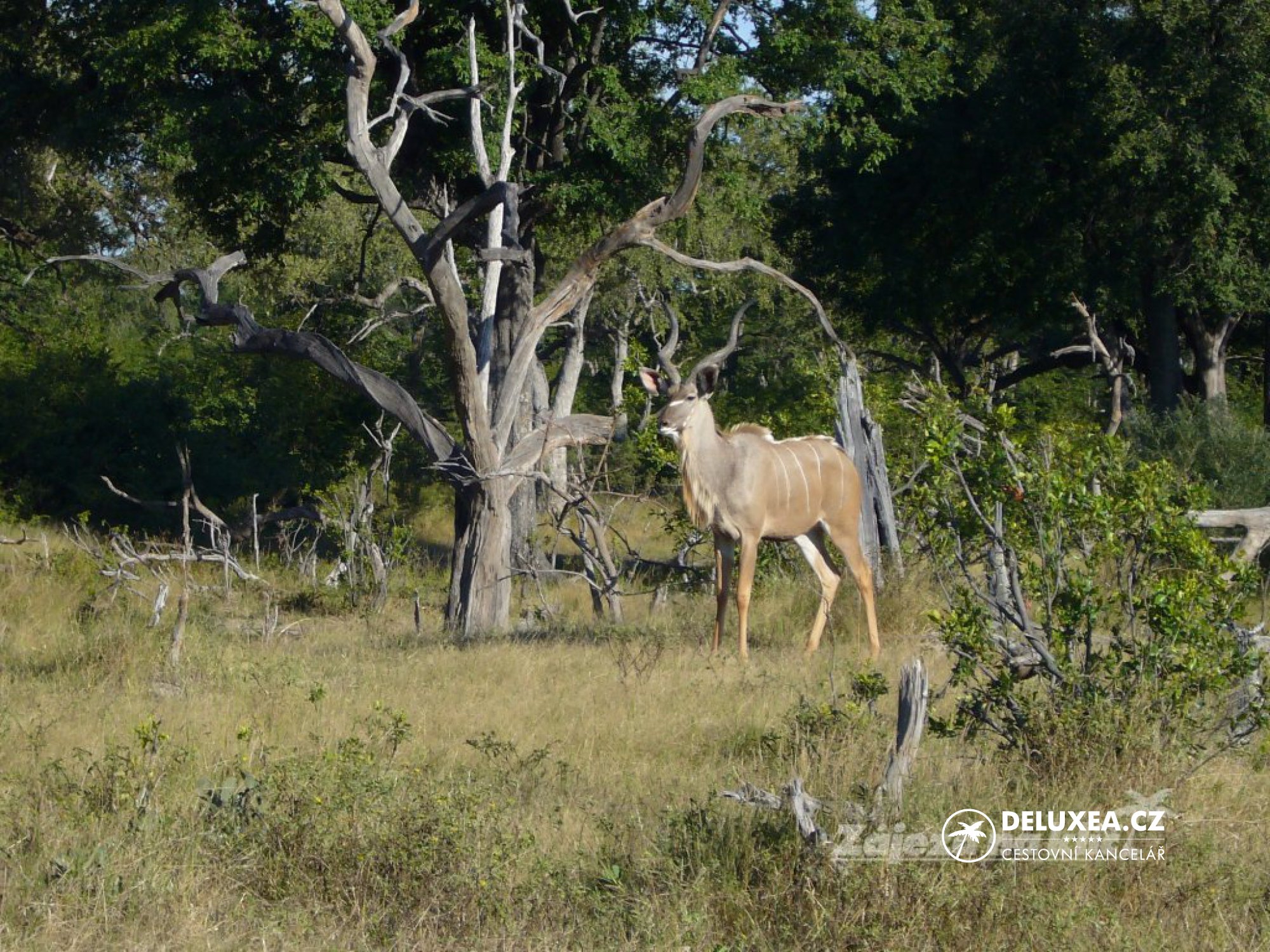 Na líných vlnách Okavanga - Na ploše více 1000 čtverečních kilometrů se rozkládá rezervace Moremi – a zhruba na čtvrtině z této plochy pomalu protéká řeka Okavango. Řeka Okavango pramení stejně jako Chobe River v Angole, avšak protéká Namíbií a u Shakawe se dostává na území Botswany, kde pak postupně mizí v písku pouště Kalahari. Po vodní ploše Okavanga se můžete pohybovat v neobvyklém typu kánojí zvaném mokoro – jet na nich však můžete pouze s domorodým průvodcem, který se vyzná v labyrintu vodních cest. Celé Moremi je protkáno hustou sítí vodních cest, a proto se zdá mokoro jako ideální nástroj pro přepravu. Delta Okavango je také velice důležitým vodním zdrojem celé oblasti. Její tvar se mění podle ročního období a množství srážek. Rezervace je obklopena velkým počtem dalších soukromých území, které však od sebe navzájem nejsou odděleny ploty. Již pár kilometrů od břehů řeky Okavango se nalézají akáciové, mopanové a lužní lesy, ale i otevřené písečné savany.