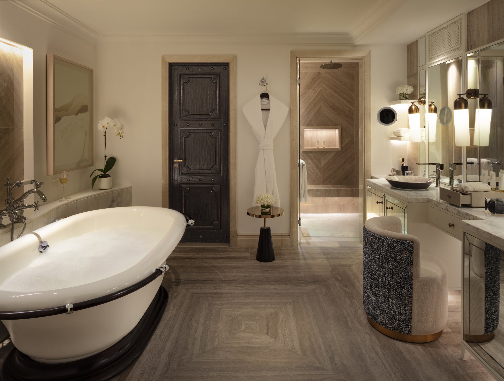 Součástí této suity je ložnice s manželskou postelí king a prostorná mramorová koupelna s vanou. Z balkonu je krásný výhled do zahrad. Max. kapacita: 4 hosté, apartmá ubytuje kombinaci až 3 dospělých osob a 2 dětí do 11 let.