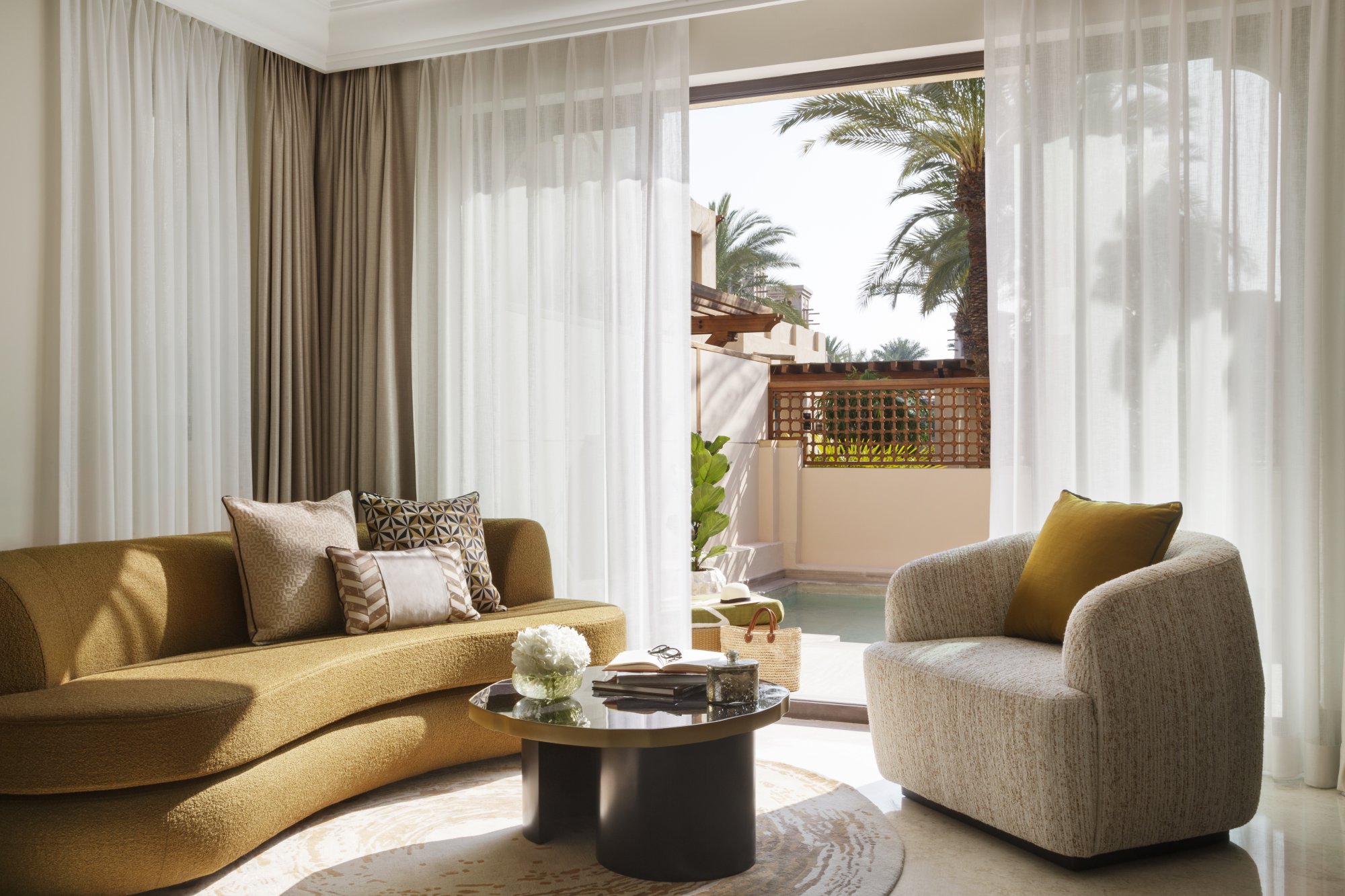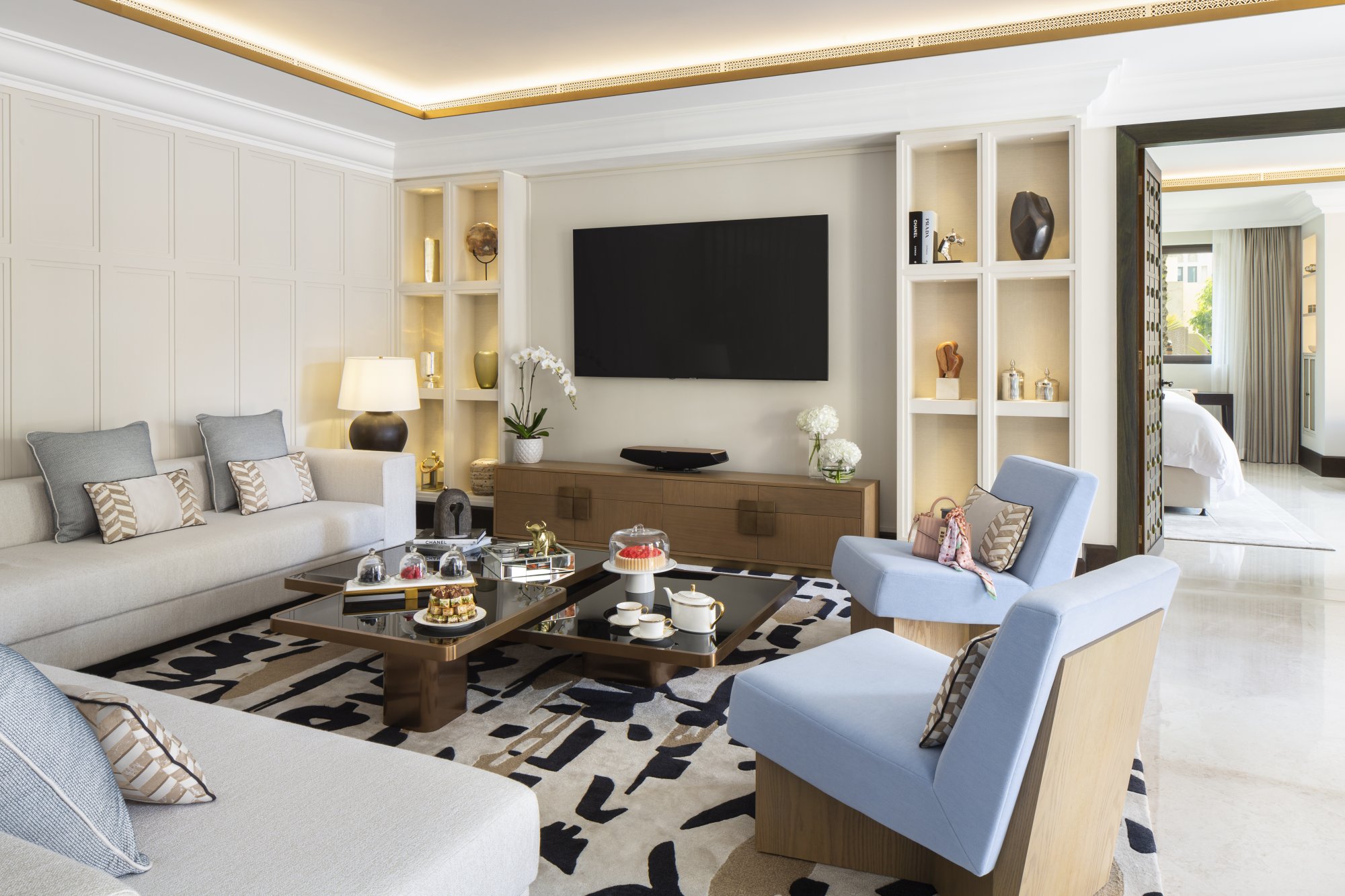 Hosté ubytovaní v apartmánech si mohou užívat tyto benefity: vyhrazená hostitelská služba, bezplatné každodenní večerní aperitivy, přístup do exkluzivních bazénů, odlehlé nádvoří, tradiční majlis a přístup do salonku The Palace Club Lounge.
