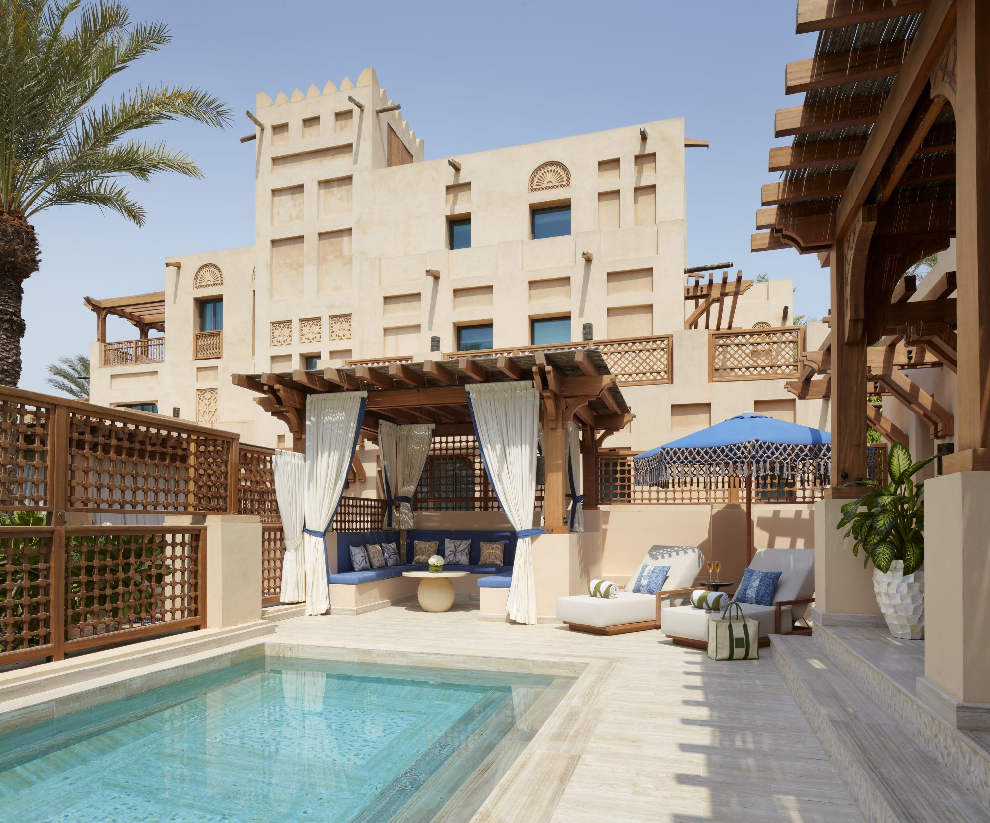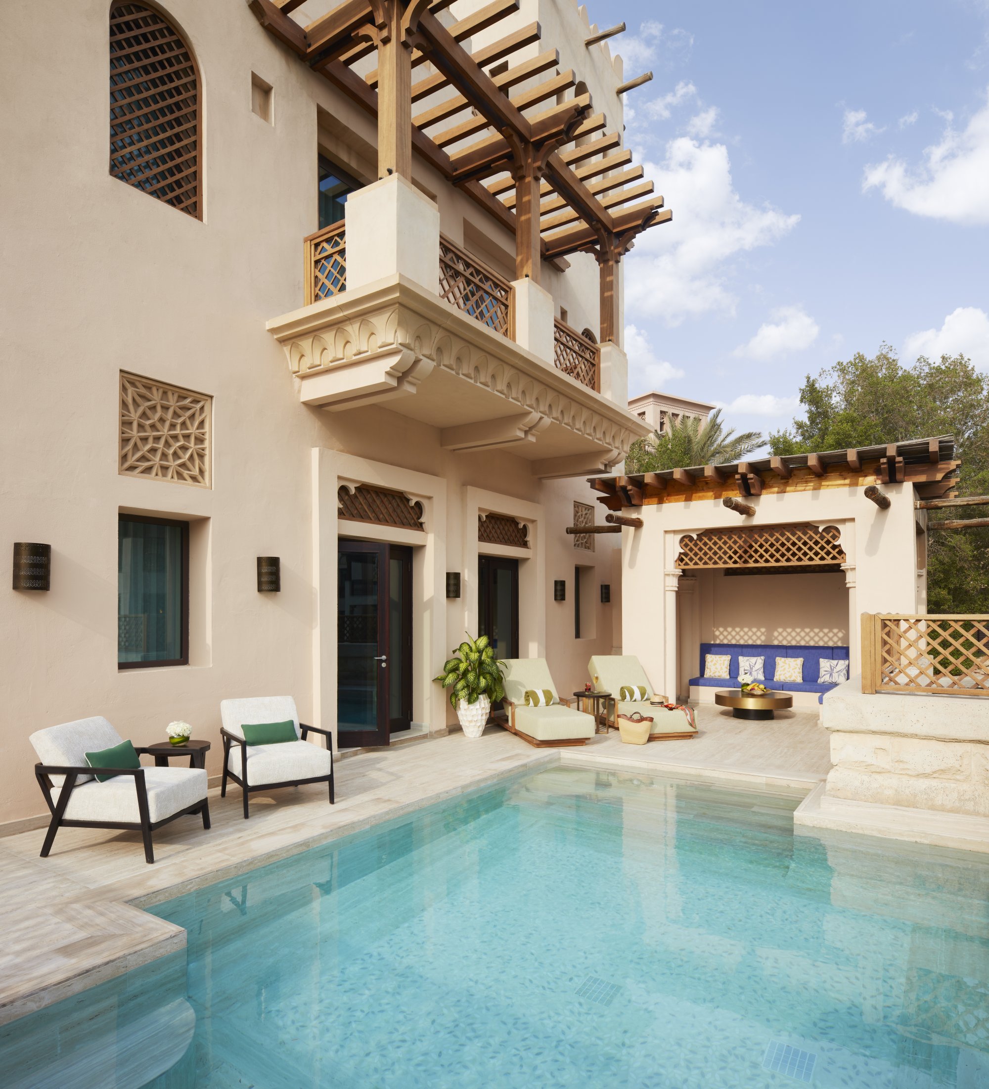 Hosté ubytovaní ve vilách si mohou užívat tyto benefity: exkluzivní vyzvednutí a odvoz s osobním řidičem, check-in a check-out v soukromí vaší vily, vyhrazený soukromý komorník k vašim službám, denní snídaně, odpolední čaj a aperitivy podávané ve vaší vile, denní bezplatné služby šéfkuchařů, soukromá cabana na pláži, vyhrazená stanice abra a exkluzivní přístup na Souk Madinat Jumeirah, neomezený vstup do vodního parku Wild Wadi Waterpark a KiDS v Jumeirah Al Qasr, soukromý bazén a balkon, kuchyň a jídelna ve vile pro soukromé večeře, prostorné koupelny s kruhovými mramorovými vanami a luxusním koupelnovým vybavením a jeden přilehlý pokoj pro doprovodný personál.