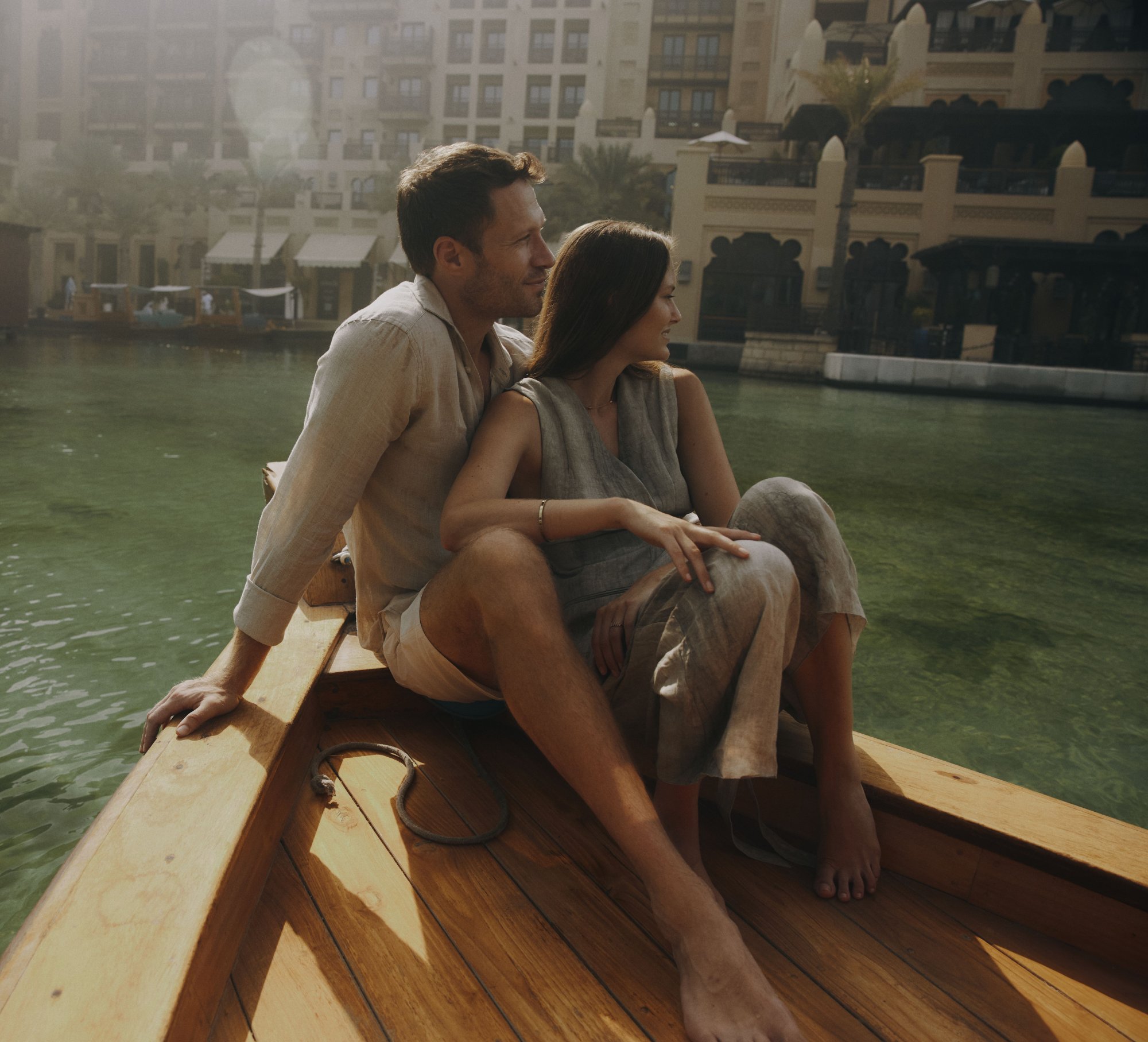 Představte si horkou arabskou noc. Je vřelá, plná života. Chladné měsíční světlo se odráží v Arabském zálivu a vrhá odlesky. Vyjdete na balkon a rozhlédnete se kolem sebe. Vidíte město, které dýchá přepychem. Všechno je možné. Jakoby luxus neměl žádné hranice. Vidíte domy, v jejichž oknech plápolají světla, vodní plochy, které tvoří ulice a palmy, které tančí v jemném nočním vánku. Tohle není sen. Je to realita hotelu Dar Al Masyaf, který je součástí komplexu Madinat Jumeirah.