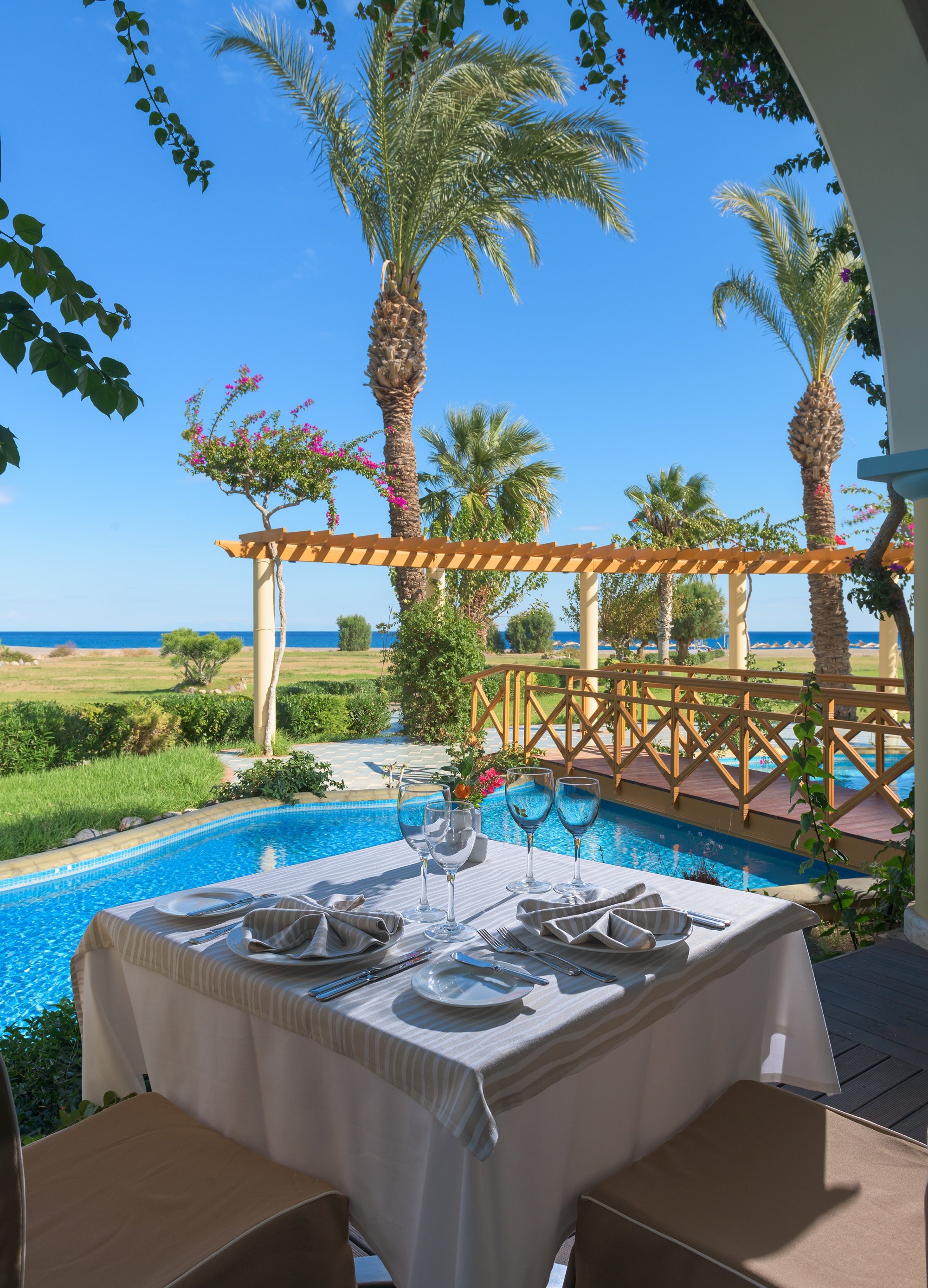Součástí tohoto exkluzivního pokoje (28 m²) je soukromý bazén s venkovní terasou a opalovacími lehátky, kde můžete nerušeně relaxovat. Interiér laděný do středomořského stylu zahrnuje manželskou postel (nebo dvě samostatná lůžka) a koupelnu s masážní vanou. Na vyžádání je k dispozici rozkládací přistýlka. Maximální kapacita: 3 osoby.