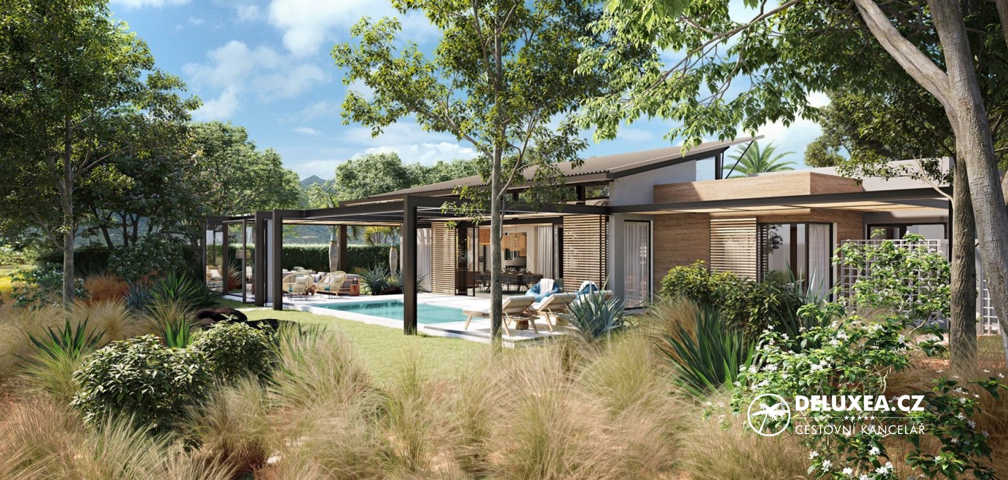 - velké střechy, posuvné žaluzie s dokonalé začlenění vil do okolní krajiny, které umožní filtrovat sluneční paprsky a minimalizovat dopad silných dešťů;