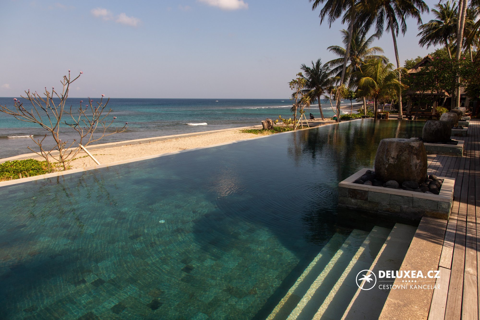 I na Lomboku během svého pobytu jsem se rozhodla lehce pracovat a navštívila hotel Quinci Pool Villas hotel****. Malý, butikový hotel v přírodním stylu uprostřed palmového ráje je oblíbený zejména u Evropanů díky své poklidné atmosféře. K dispozici jsou 3 bazény, z nichž u některého z nich můžete sledovat pěkné západy slunce. Pokud je jasno, tak při západu slunce máte šanci zahlédnout i horu Mt. Agung z ostrova Bali