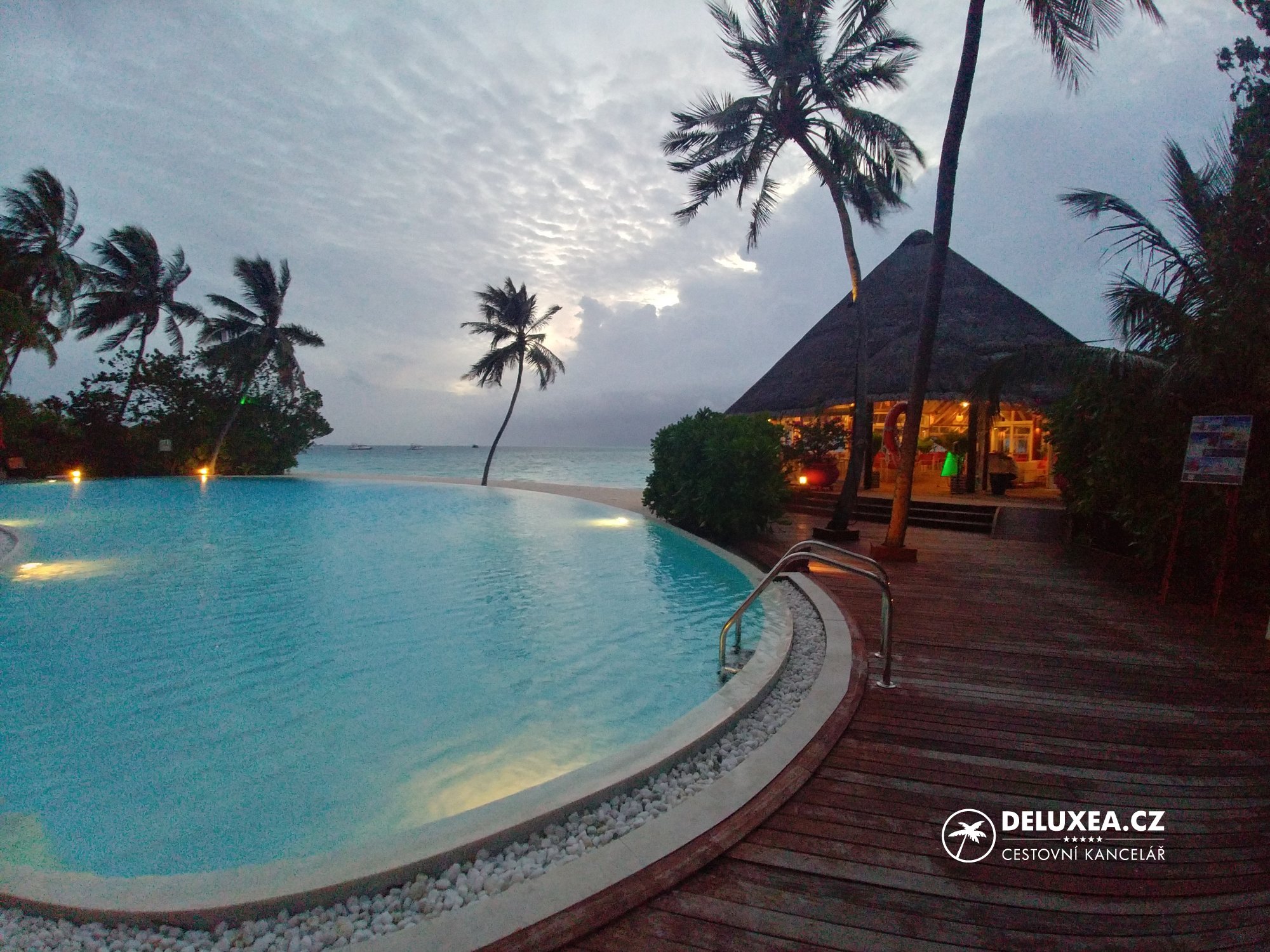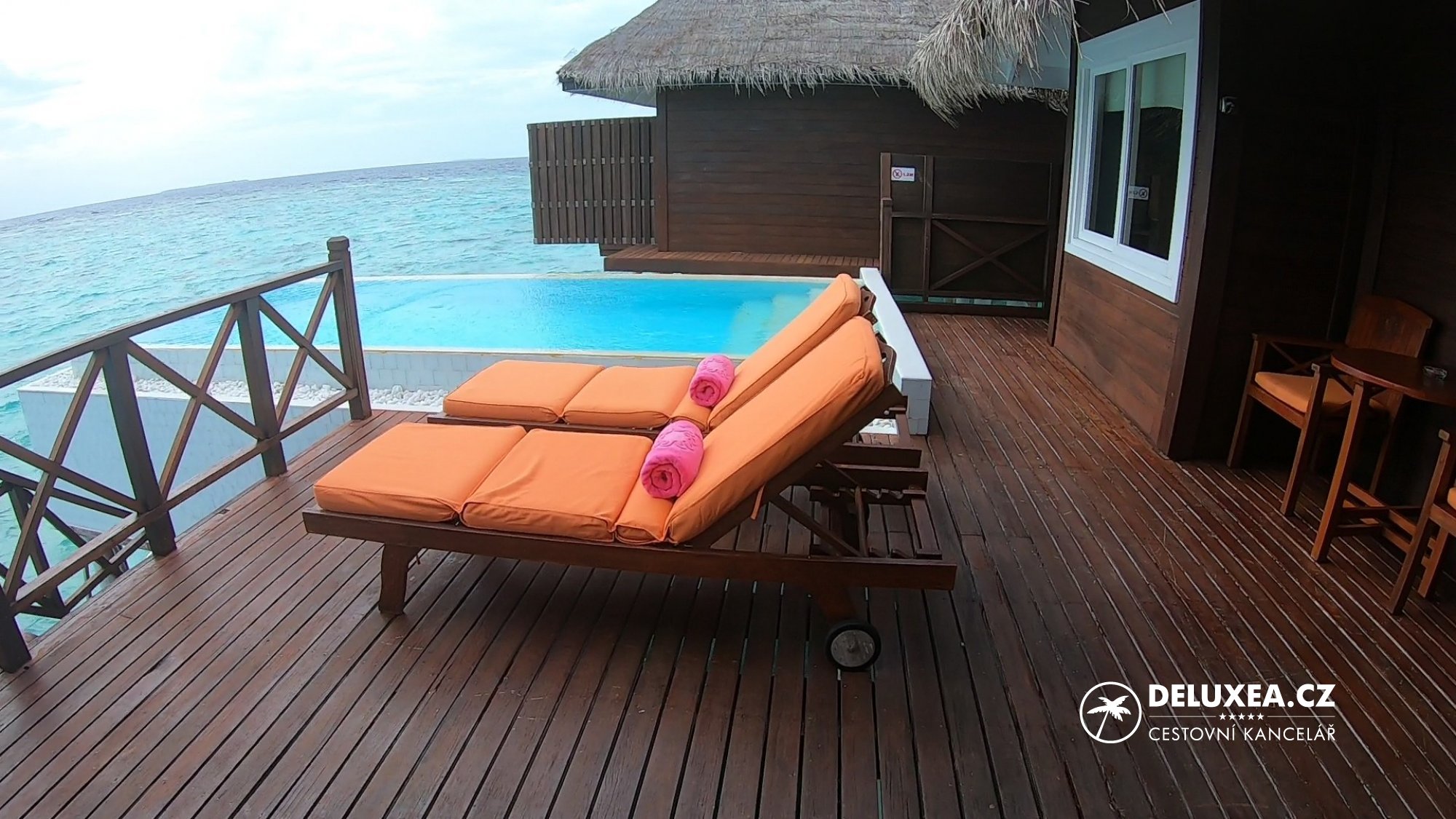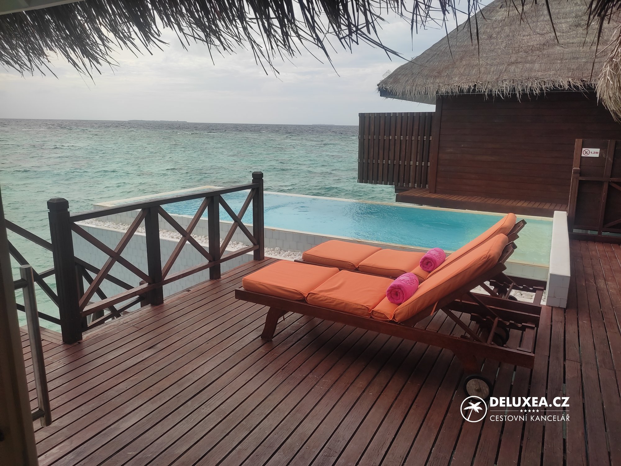 Z naší zkušenosti bychom při výběru nadvodní vilky doporučovali volit spíše východní stranu. Na západní straně je výhled směřován na lagunu a ostrov se zázemím, navíc zde také často přistávají a vzlétají hydroplány.