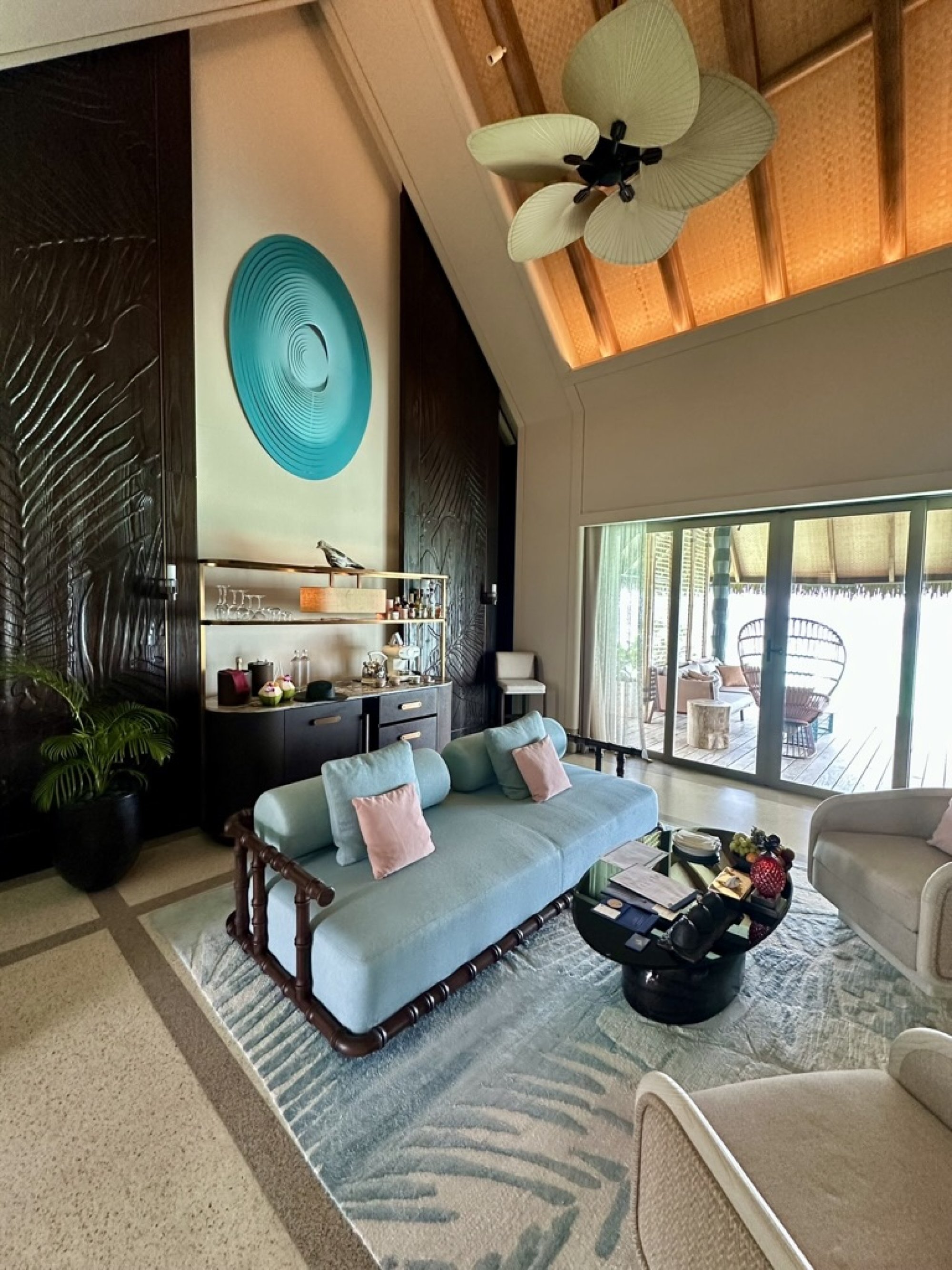 Nejdříve jsme zamířili do rezortu Joali Maldives, což mi připadá jako logická volba v případě, že hodláte navštívit oba rezorty. Tento rezort je více klasicky luxusní, nachází se v atolu Raa v severních Maledivách. Dopravíte se sem pohodlně hydroplánem. Na Joali Maldives jsem hlavně ocenila opravdu špičkový servis, kdy všichni zaměstanci do jednoho byli extrémně ochotní, vstřícní a všímaví. Toto, byť to může znít jako samozřejmost, není vždy tak ani v rezortech top úrovně. Jedná se o překrásný přírodní ostrov, který nabízí i velmi dobré šnorchlování, které jsme si s místním potapěčem také vyzkoušeli.