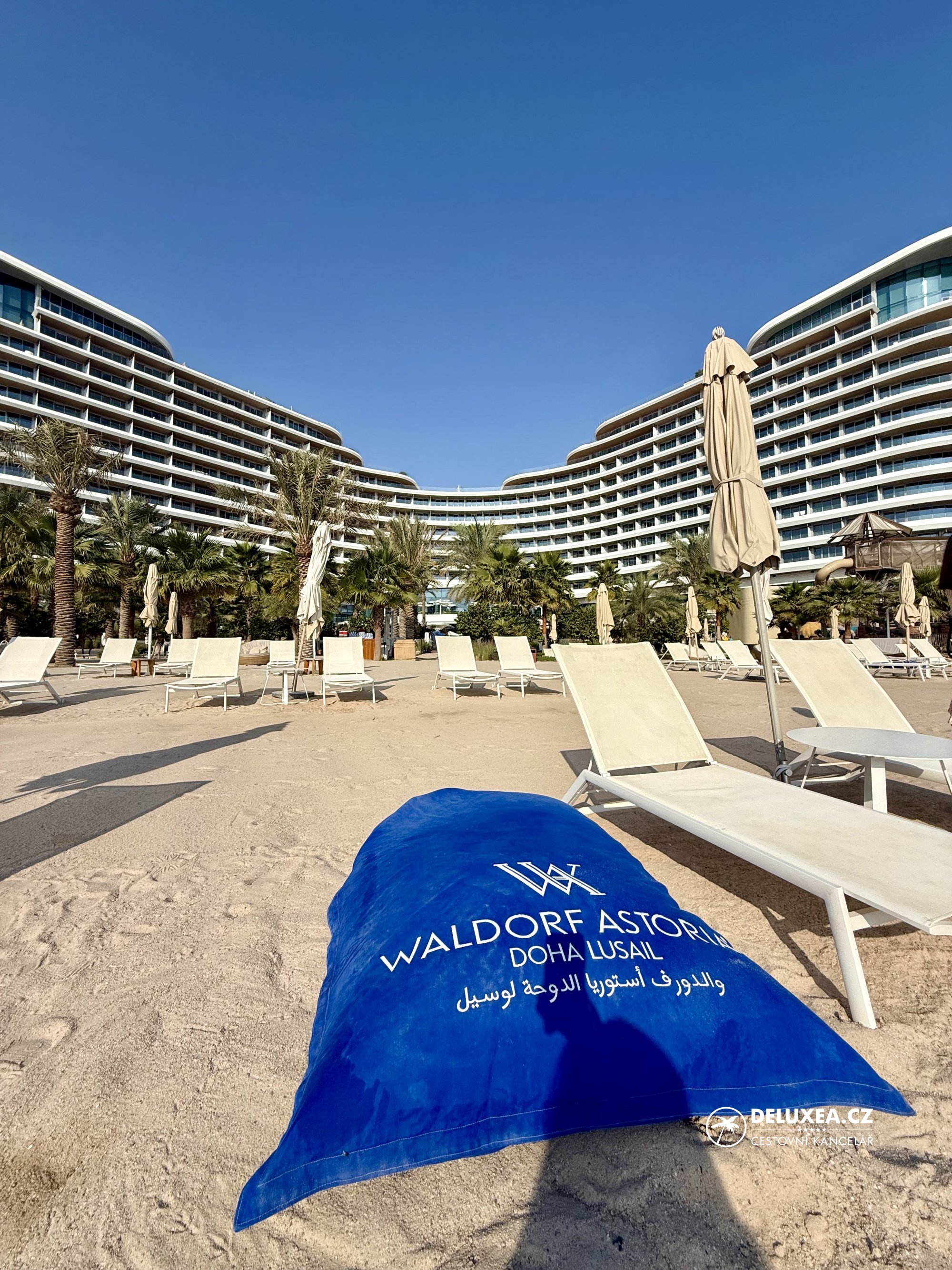 Další noci jsme strávily v hotelu Waldorf Astoria Lusail, který nabízí krásnou pláž, elegantní venkovní areál a velmi příjemnou atmosféru. Snídaně se zde podávaly formou bufetu s možností objednávek à la carte a probíhaly v restauraci situované jen pár kroků od bazénu a moře.