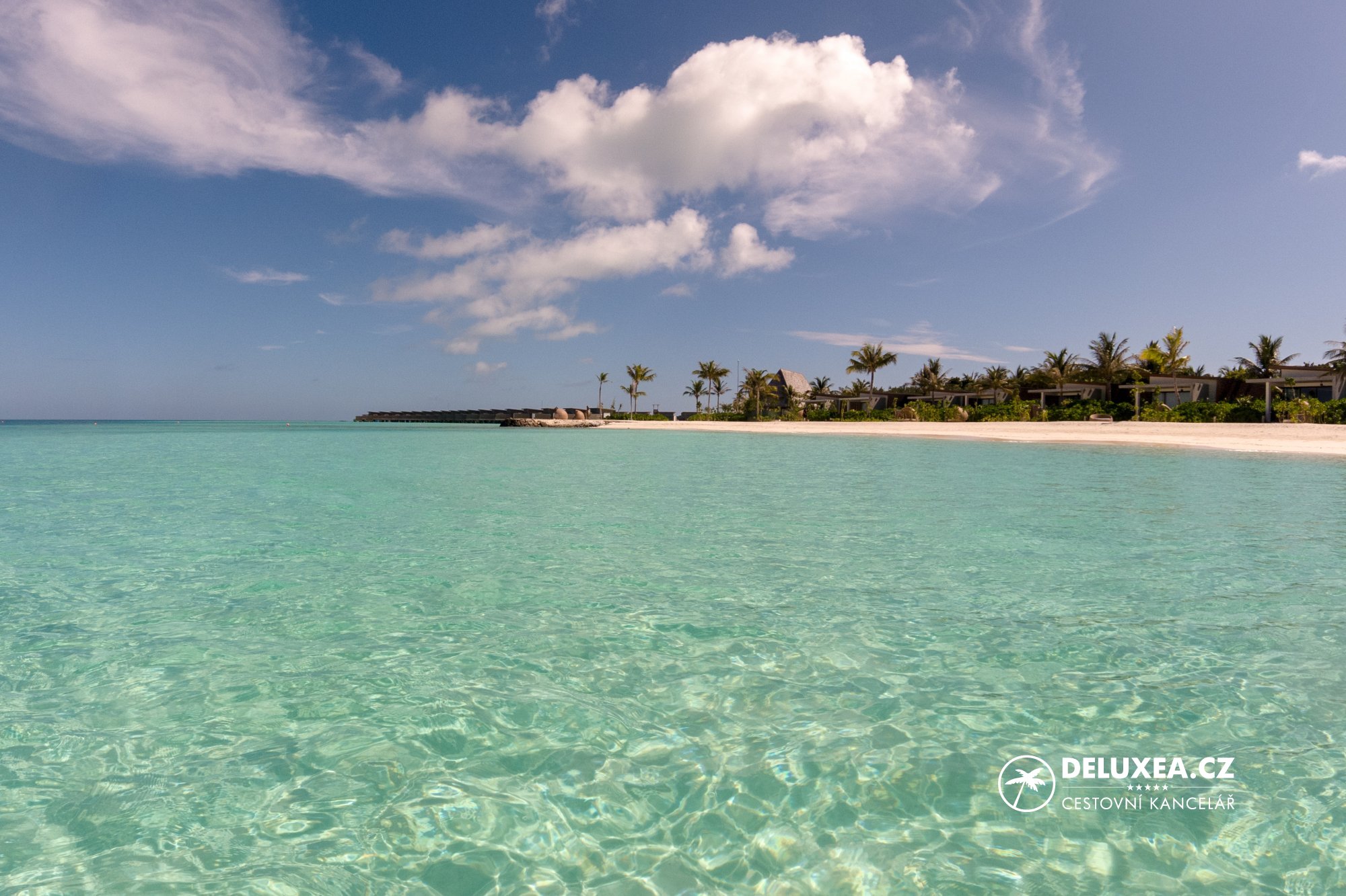 Následně se nás již ujal komorník, který se o nás staral po celou dobu našeho pobytu. Kdykoliv jsme měli nějaké přání či chtěli si zarezervovat stůl na večeři, nebo masáž, spojili jsme se s ním pomocí whatsupp a vše nám obratem zajistil. Po cestě z příjezdového salonku nám ukázal vše podstatné a hned jsme se mohli ubytovat v Beach Ville na západní straně ostrova s dlouhou pláží a krásným výhledem na tyrkysovou lagunu, která ostrov obklopuje.