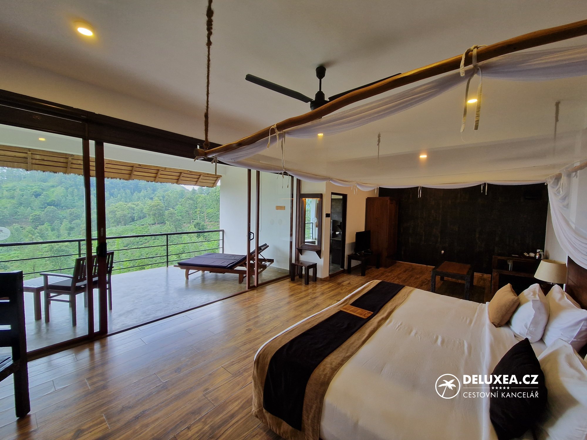 Čtvrtou noc na Srí Lance jsem trávil v aktuálně nejlepším hotelu v oblasti - 98 Acres Ella. Má pouze 32 pokojů a suit umístěných na svazích s výhledem na zelené kopce a čajové plantáže. Vlastník hotelu má i továrnu na čaj, který lze během pobytu ochutnat. Každopádně pokoje jsou velmi prostorné a vyhotovené v rustikálním designu. Je vhodné zmínit, že nemají klimatizaci, ale to asi není ani takový problém vzhledem k podnebí v daném místě. I tento hotel se hodí spíše pro páry a je oblíbeným místem třeba pro novomanžele. Vedle hotelu pak lze za poplatek využít privátní bazénový klub nebo nejdelší zipline v jihovýchodní Asii. Obojí jsem měl možnost si vyzkoušet a určitě je to příjemné okořenění pobytu.
