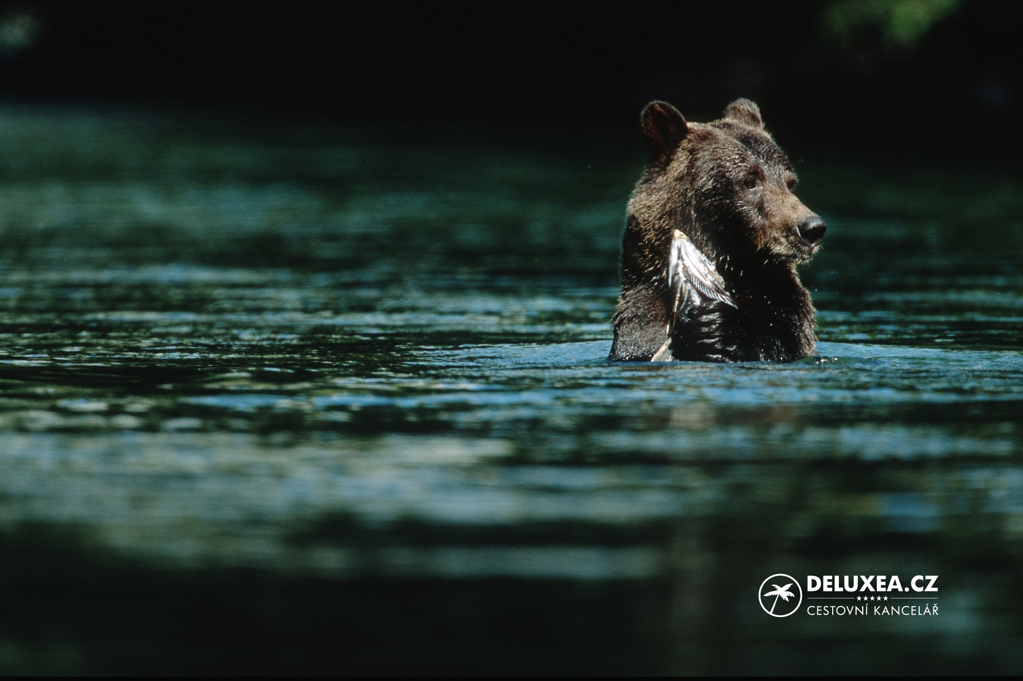 Ráno vás v hotelu vyzvedne váš řidič a odveze vás na jižní terminál letiště ve Vancouveru. Čeká vás 70minutový vyhlídkový let do Port Hardy a následně krátký let hydroplánem do Nimmo Bay Wilderness Resort. Ubytujete se v tomto luxusním hotelu uprostřed divočiny, který se rozkládá přímo u vodní hladiny a nabízí celou řadu outdoorových aktivit. Odpoledne můžete strávit podle sebe – vydejte se na túru do pralesa pozorovat divokou zvěř, projeďte se na kajaku kolem souostroví Broughton Archipelago, nebo si odpočiňte v cedrové vířivce pod majestátním vodopádem.