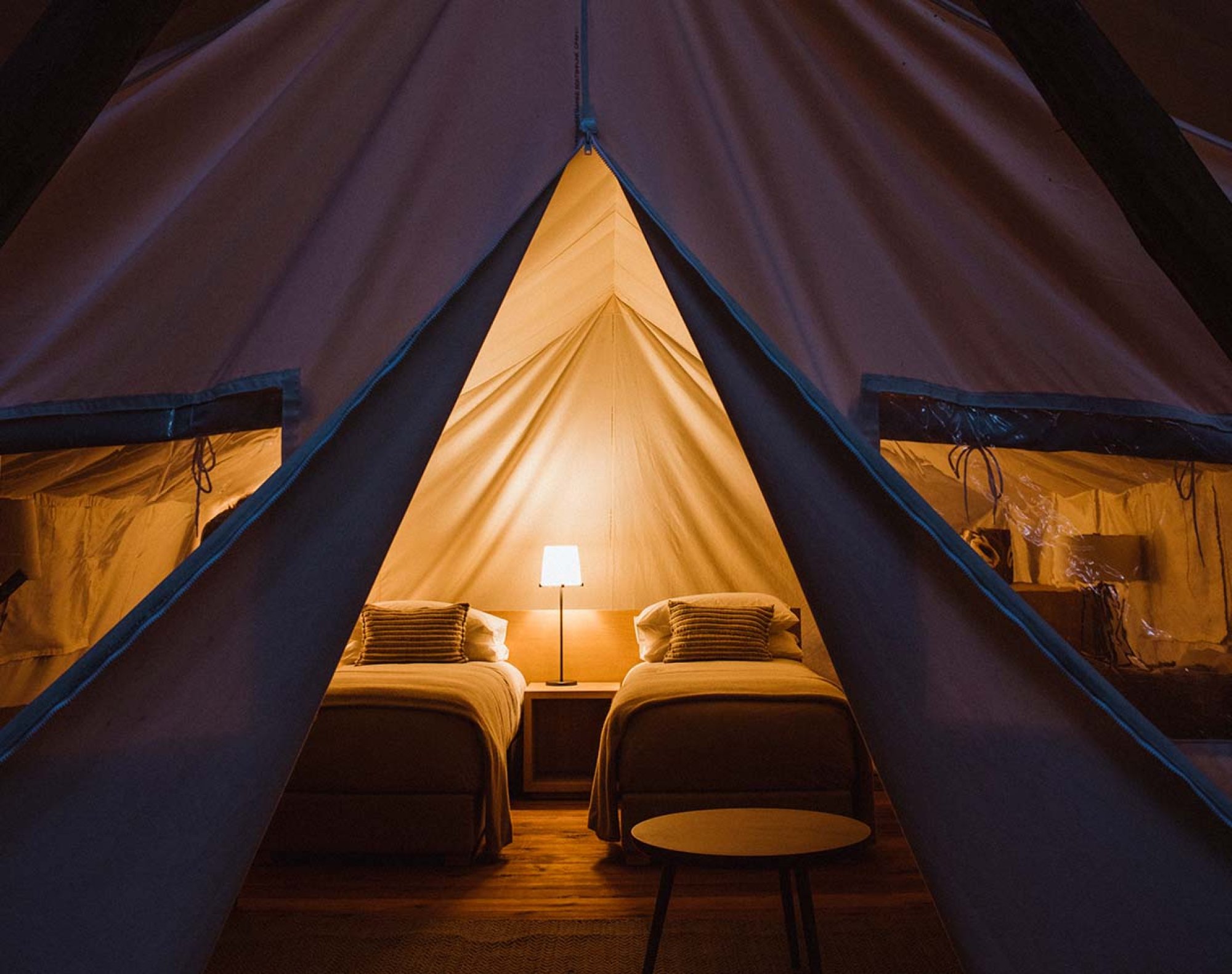 Exkluzivní kolekce 25 moderně zařízených plátěných stanů zajišťuje dokonalé soukromí, zatímco úchvatné výhledy na hladinu řeky či les dělají z každého pobytu nezapomenutelný zážitek. Součástí pobytu je také celodenní stravování a nápoje, podávané v elegantní hotelové restauraci s barem.