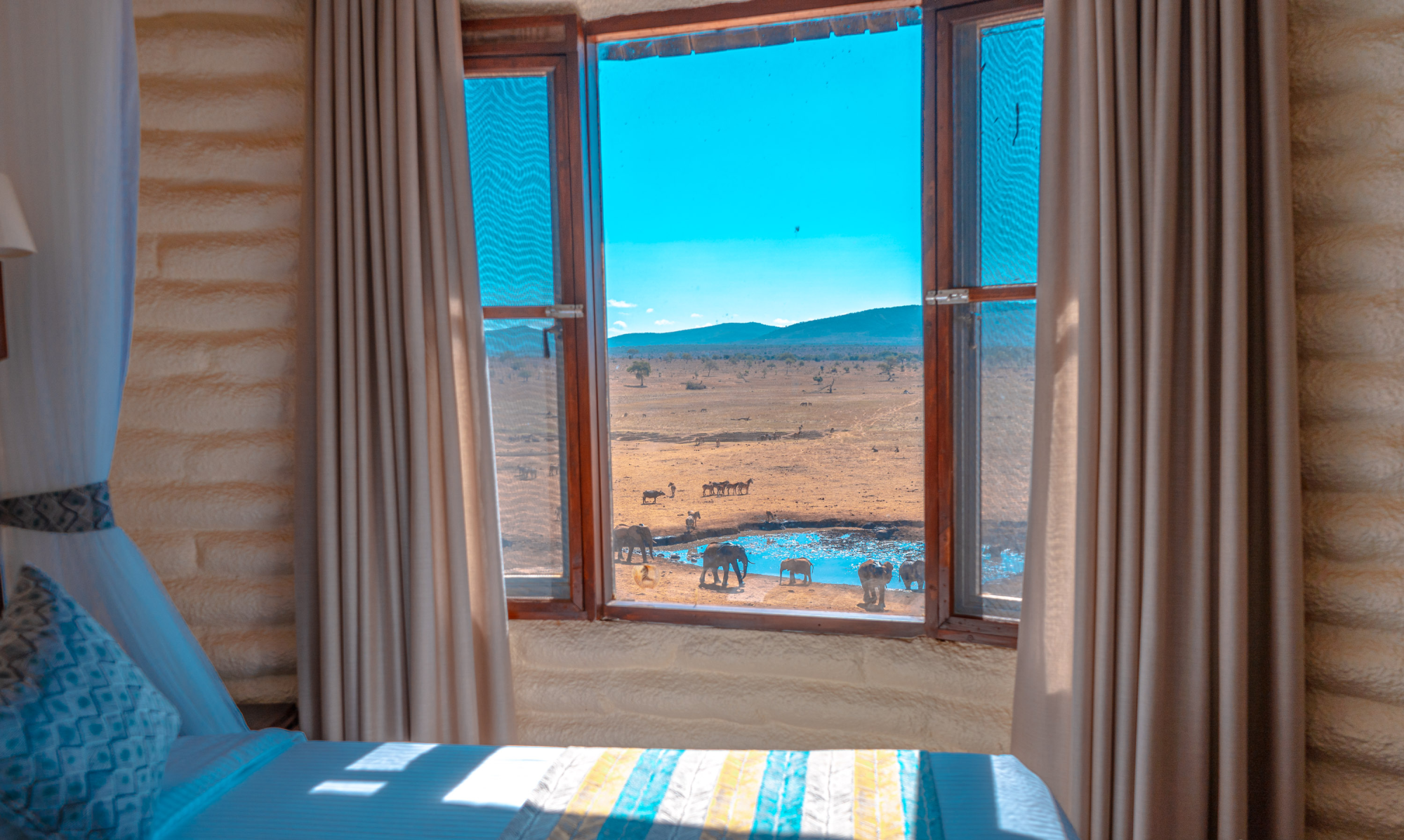 Salt Lick Safari Lodge představuje luxusní safari destinaci v samém srdci rezervace Taita Hills Wildlife Sanctuary, která nabízí klidné zázemí s úchvatným výhledem na napajedlo a rozlehlé pláně Tsavo. Můžete se těšit na útulné ubytování, špičkové služby, a především individuální přístup. Součástí hotelu je také speciální podzemní tunel a bunkr s okny těsně nad zemí, který vám umožní sledovat zvířata u napajedla z bezprostřední blízkosti. Zejména během období sucha se zde shromažďují velká stáda slonů, buvolů, zeber a různých druhů antilop, někdy pronásledovaných velkými šelmami.