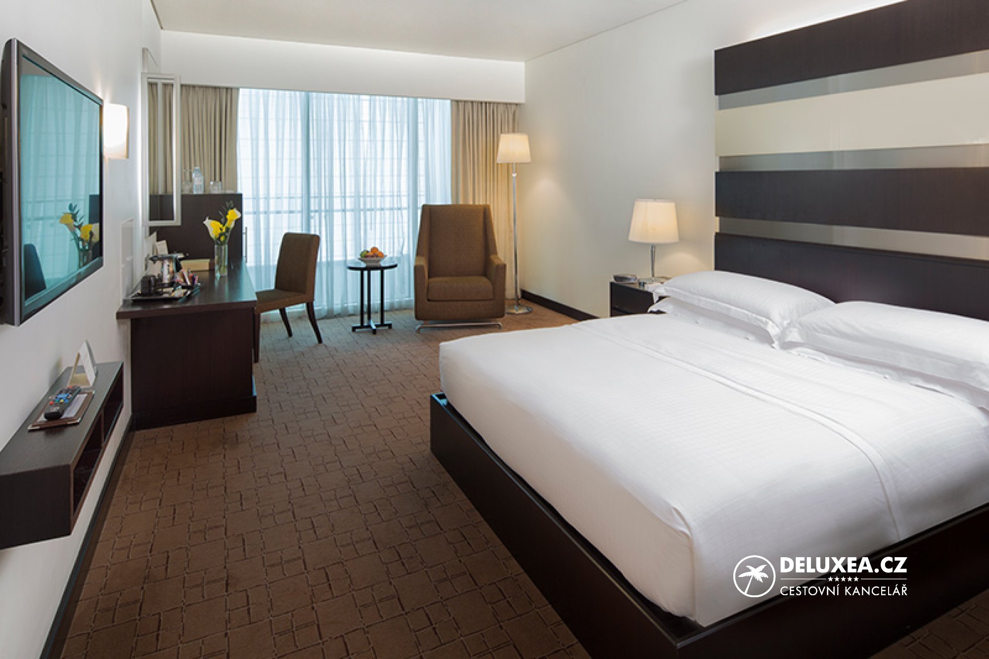 Hotel disponuje celkem 341 pokoji od Royal/Presidential Suite, Executive Suite, Executive Room, Junior Suite, Superior Room až po Deluxe Room. V hotelu můžete dále využít wellness centrum, kde naleznete menší plavecký bazén, jacuzzi, saunu nebo páru. Součástí hotelu není restaurace – ty najdete na patře s duty free obchody, případně stravu dostanete na dalším letu.