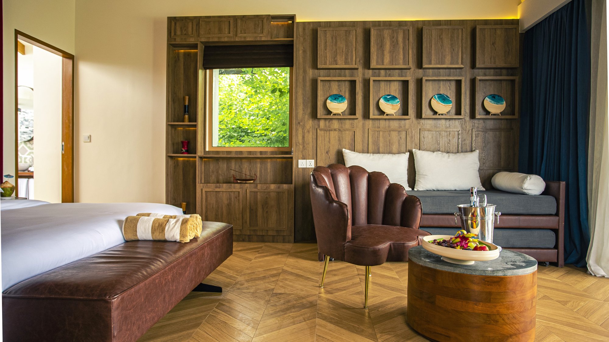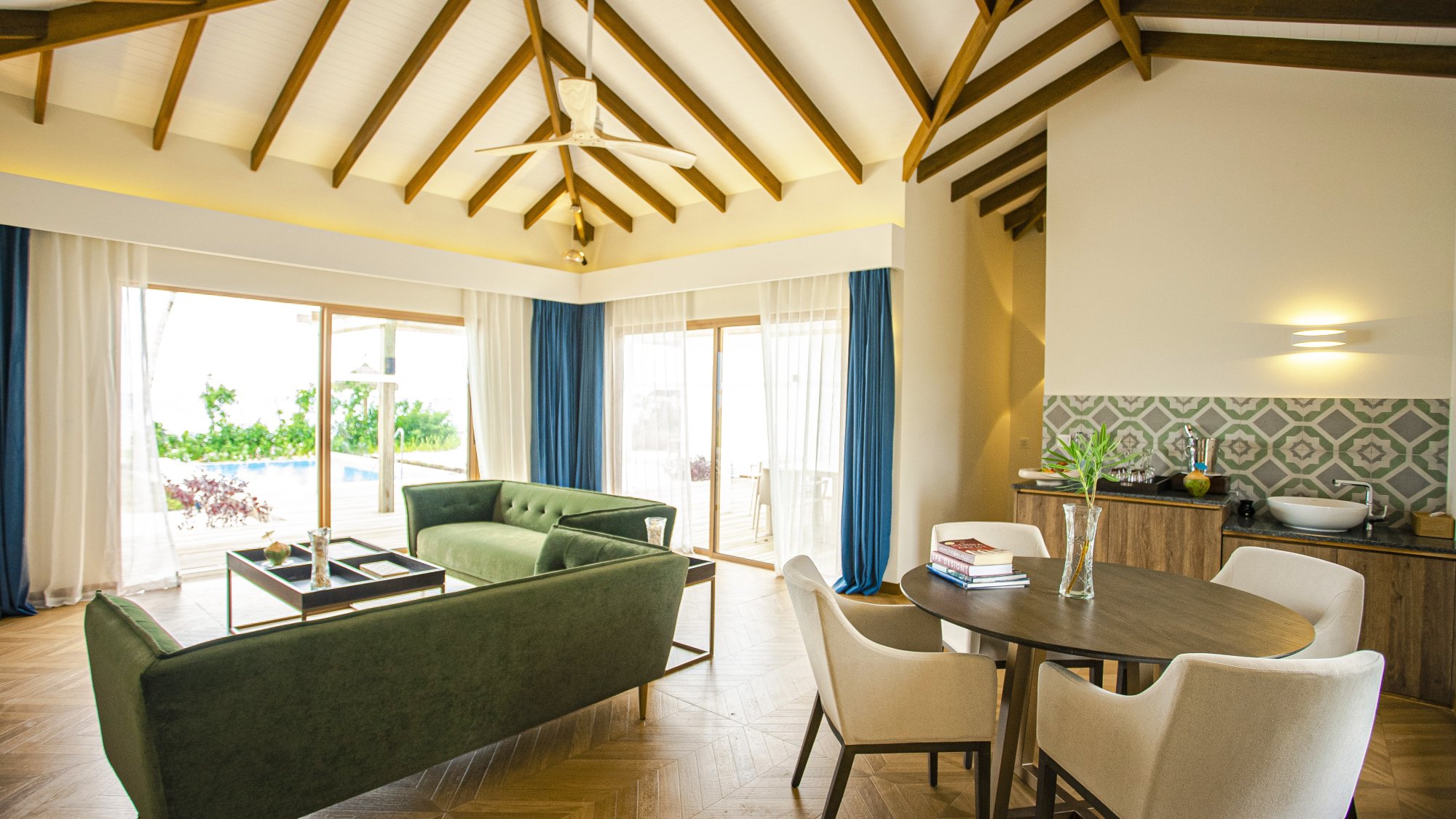 Nabízí maximální pohodlí a luxus. Jde o největší apartmá na ostrově, které se skládá ze dvou ložnic s manželskou postelí, dvou koupelen a nádherně zařízeného obývacího pokoje. Kromě toho se můžete těšit na venkovní jídelnu a soukromý bazének. Apartmá je situované přímo na pláži, a může se tak pochlubit dechberoucími výhledy na lagunu a západ slunce. Maximální kapacita: 6 dospělých nebo 4 dospělí a 2 děti.
