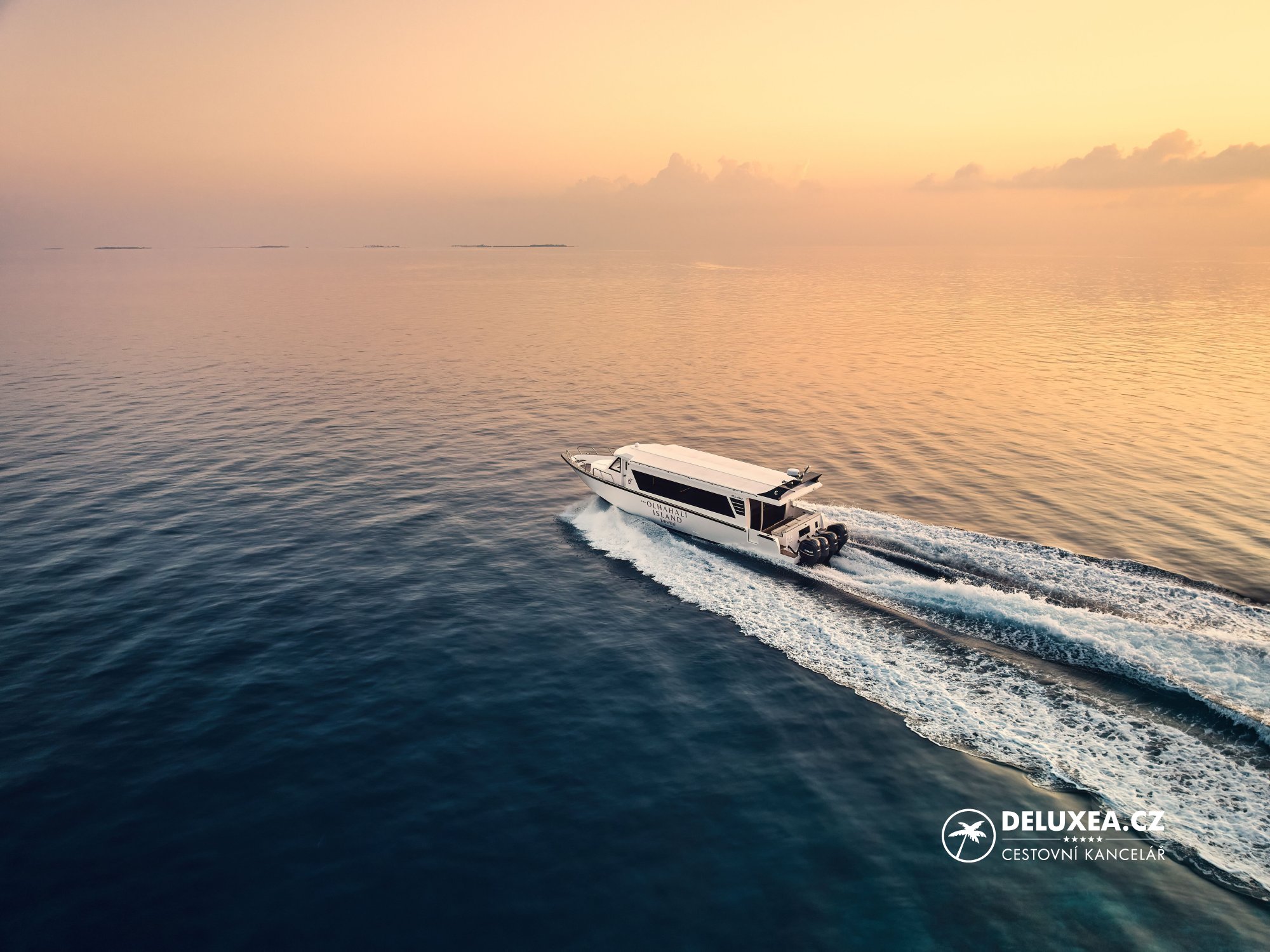 Transfer rychločlunem je nejen praktický, ale i velmi příjemný. Cestujete v komfortní palubě se sezením, často v menší skupince hostů, takže celá cesta působí osobněji a uvolněněji. Po cestě navíc proplouváte kolem malebných ostrůvků, lagun a dalších resortů – a když se zvedne mořský vánek a před vámi se objeví váš privátní ostrov, je to krásný start celé dovolené.