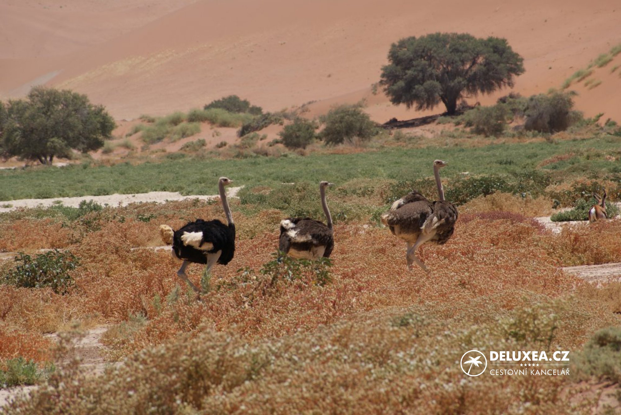 Většinu území parku představuje neproniknutelná písečná poušť, do níž se lze dostat jen při jejích okrajích. Neslavnějším takovým místem je bezesporu místo zvané Sossusvlei, kde najdete světový unikát: nejvyšší písečné duny na světě (dosahují až 400 m), tvořené charakteristickým pískem rudé barvy. Vyzkoušejte si na vlastní kůži, jaké to je vylézt na dunu po jejím hřebenu, vychutnávat si z výšky okolní přírodu a pak skákat z duny zpátky dolů.