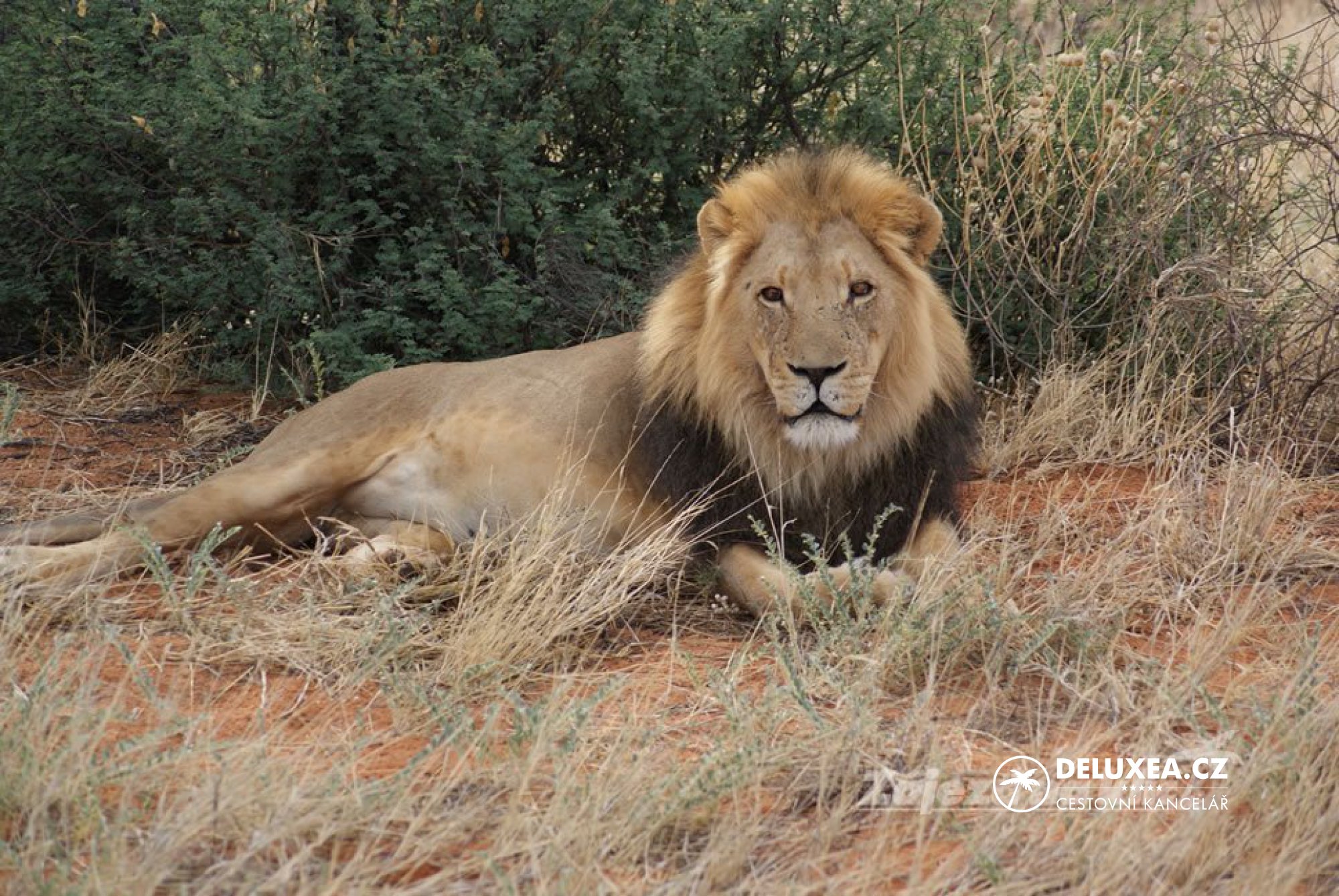 Zlatým hřebem celého pobytu a pro mě asi největším zážitkem bylo focení lvů. Přijeli jsme k menší ohradě (odhadem měla asi 2 km2), obehnané trojitým ohradníkem a ostnatým drátem. Tady bydlí lvi. Byl to zajímavý pocit, když průvodce otevřel bránu, vjel dovnitř a zase ji zavřel. Pocit, že jste někde uzavřeni s masožravou šelmou a kromě nízkých železných zábran na voze vás vlastně nic nechrání. Průvodce nás ale ujistil, že není třeba se bát – lvi jsou nažraní, takže po nás útočit nebudou. Teď bylo jen třeba je najít. Průvodce jel po lvích stopách, které byly v rudém písku, zmáčeném od ranní rosy, dobře vidět. Takový adrenalinový zážitek jsem ještě nikdy nezažil. Chvilku nám to trvalo, ale nakonec jsme je našli. Před námi v trávě leželi lev a lvice. Přijeli jsme k nim na pět metrů. Nikdy jsem tak blízko lva nebyl. Žádné bariéry jako v ZOO, nic. Byl to nepopsatelný pocit. Asi po deseti minutách, kdy jsem nespustil prst ze spouště foťáku, toho lvice začala mít dost a hlasitě zařvala. To byl signál k tomu, že dnes bylo pózování dost. Vydali jsme se tedy zpátky do lodge, cestou vyfotili ještě stádo zeber, sbalili se a zamířili zpět do Windhoeku, odkud nám v 21.00 letělo letadlo zpět do Evropy.