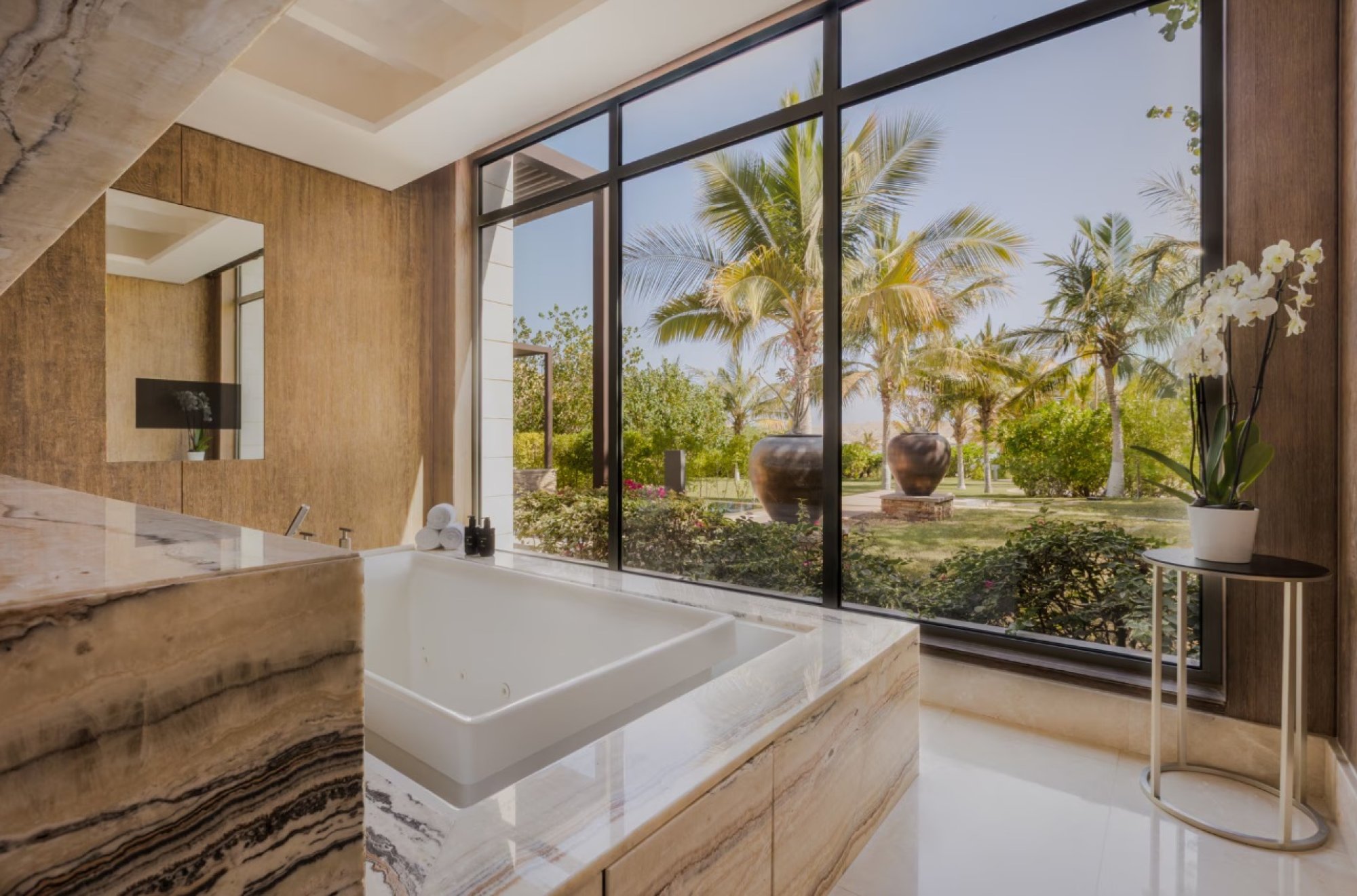 Zažijte stolování v asijské stylu, zažeňte žízeň výtečnými koktejly, vyberte si z širokého výběru doutníků a užívejte si pozoruhodný výhled na Ománský záliv.