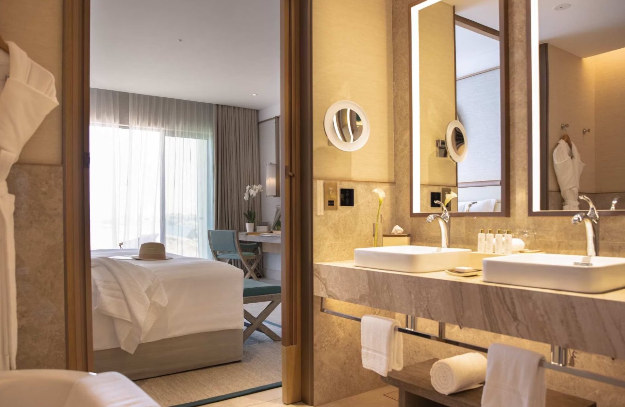 Apartmá s manželskou postelí king nebo oddělenými postelemi twin nabízí nádherný výhled na moře. K dispozici jsou dvě velké koupelny s mramorovou podlahou, samostatnou vanou a dešťovou sprchou a toaletní stolky. Apartmá zahrnuje také oddělený obývací pokoj, kuchyňský kout a jídelní část. Součástí je také moderní technologické vybavení, soukromý balkon a propojení s dalším pokojem. Hosté budou mít exkuzivní přístup do Premium Executive Lounge. Kapacita: 4 dospělí a 2 děti do 12 let, nebo 6 dospělých osob.