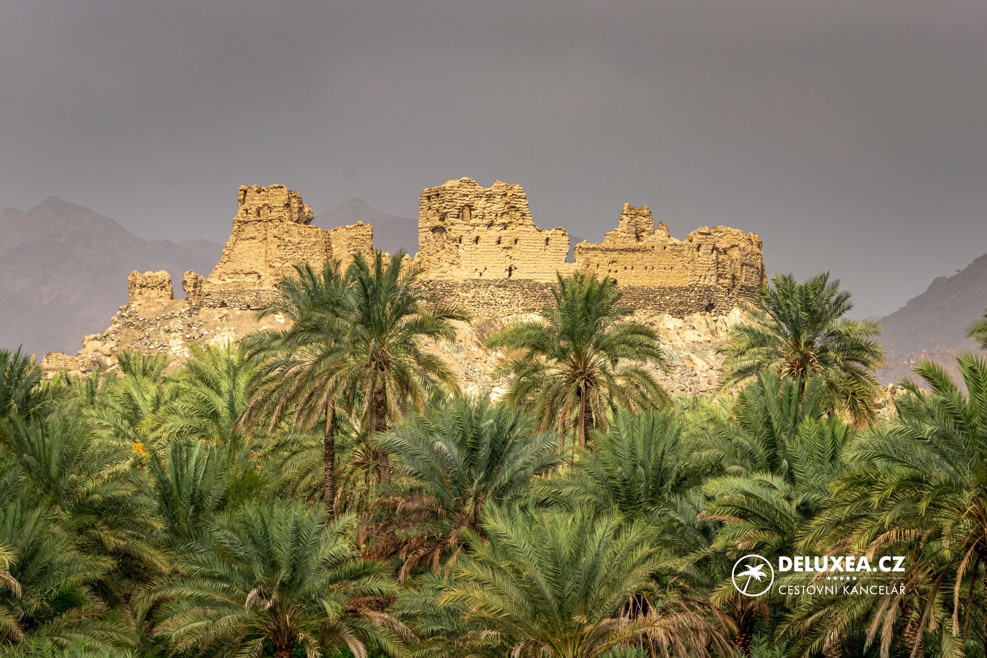 Nizwa: pevnost a tržiště souk – Zpoza svěží zeleně a datlových palem zavlažovaných nejdelším sofistikovaným systémem kanálů falaj stoupá město Nizwa. Nemůžete minout zdejší impresivní pevnost ze 17. století. Budete moci vyšplhat nahoru a kochat se dech beroucími výhledy na město a okolní hory. Za návštěvu stojí také tradiční trh souk, jenž je centrem městského života a stará se o denní životní potřeby místních, stejně jako o prodej suvenýrů návštěvníkům. Nejlepší je návštěva trhu v pátek ráno, kdy zde probíhá rozruch s prodejem koz a dobytku. Bahla: pevnost a hrnčíři – Toto malé město pouhých 40 km od Nizwy je domovem jedné z největších a nejpropracovanějších pevností, která je jako jediná v Ománu na Seznamu světového dědictví UNESCO. Předpokládá se, že na tomto místě byla pevnost již před islámským obdobím a má kořeny až ve 13. století. Nedávno byla tato enormní pevnost z důvodu renovace uzavřena a znovuotevření proběhlo v roce 2012. Další atraktivitou města jsou hrnčíři, kteří mají údajně nejšikovnější ruce a seskupují se na tradičním tržišti souk, kde hrnčířství a další řemesla jsou hlavním lákadlem. Oběd v místní restauraci. Hrad Jabreen: ománský poklad – Na prázdné pláni stojí o samotě nejúchvatnější ománský hrad Jabreen, proti kterému se tyčí pohoří Jebel Akhdar. Byl vystavěn v období míru, což odráží jeho jednoduchá majestátnost. Není to žádné místo ve stylu muzea s artefakty, spíše se jedná o ukázku designu a architektonických rysů s magickou atmosférou.