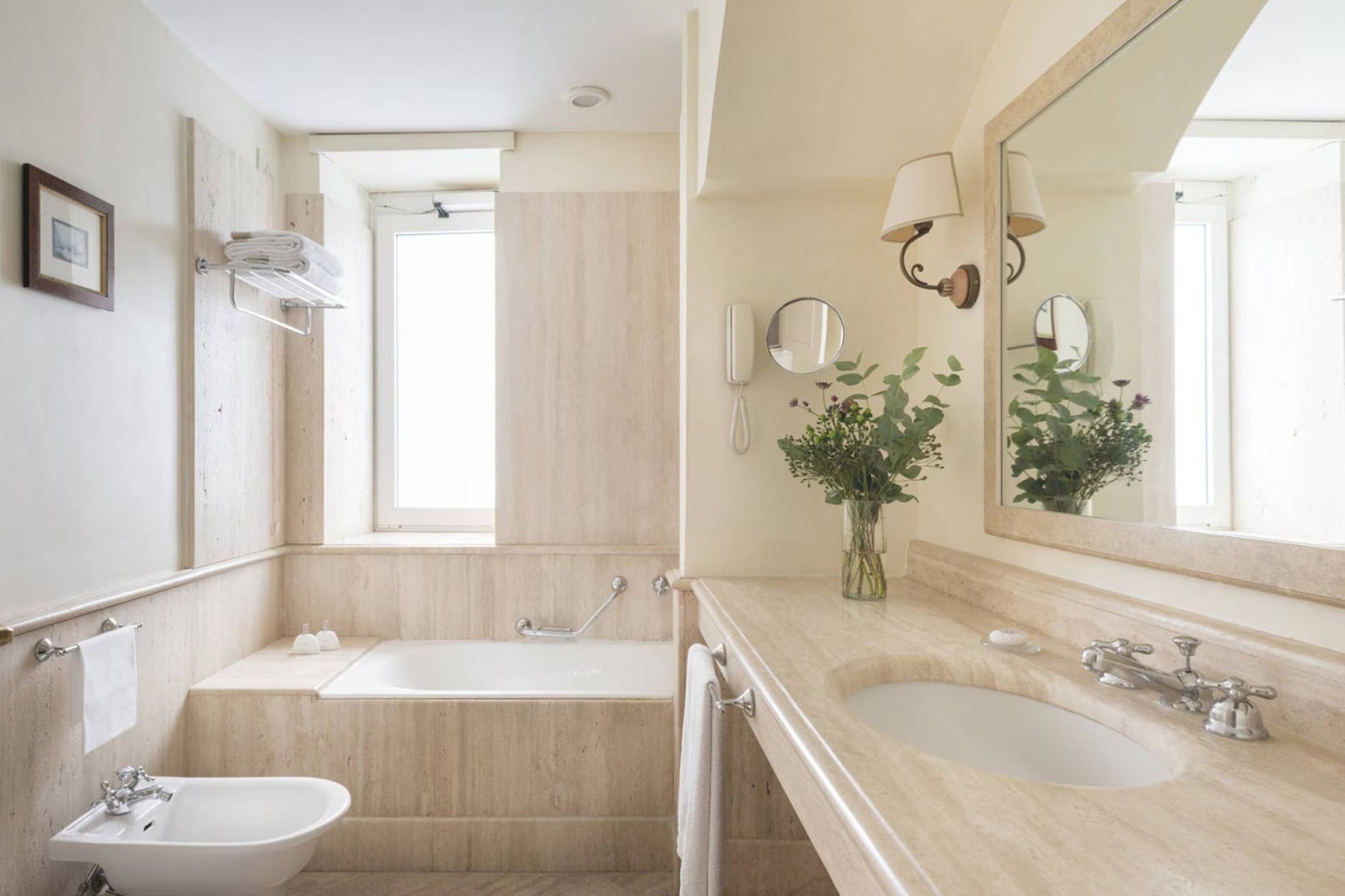 Dopřejte si více prostoru v tomto elegantním pokoji (35 m²) s balkónem, z něhož se můžete kochat výhledem na svěží zeleň a horu Solaro. Uvnitř najdete manželskou postel (nebo dvě lůžka na vyžádání), krásnou mramorovou koupelnu, HD TV s mezinárodními i lokálními programy, sejf a pracovní stůl. Maximální kapacita: 3 dospělí.
