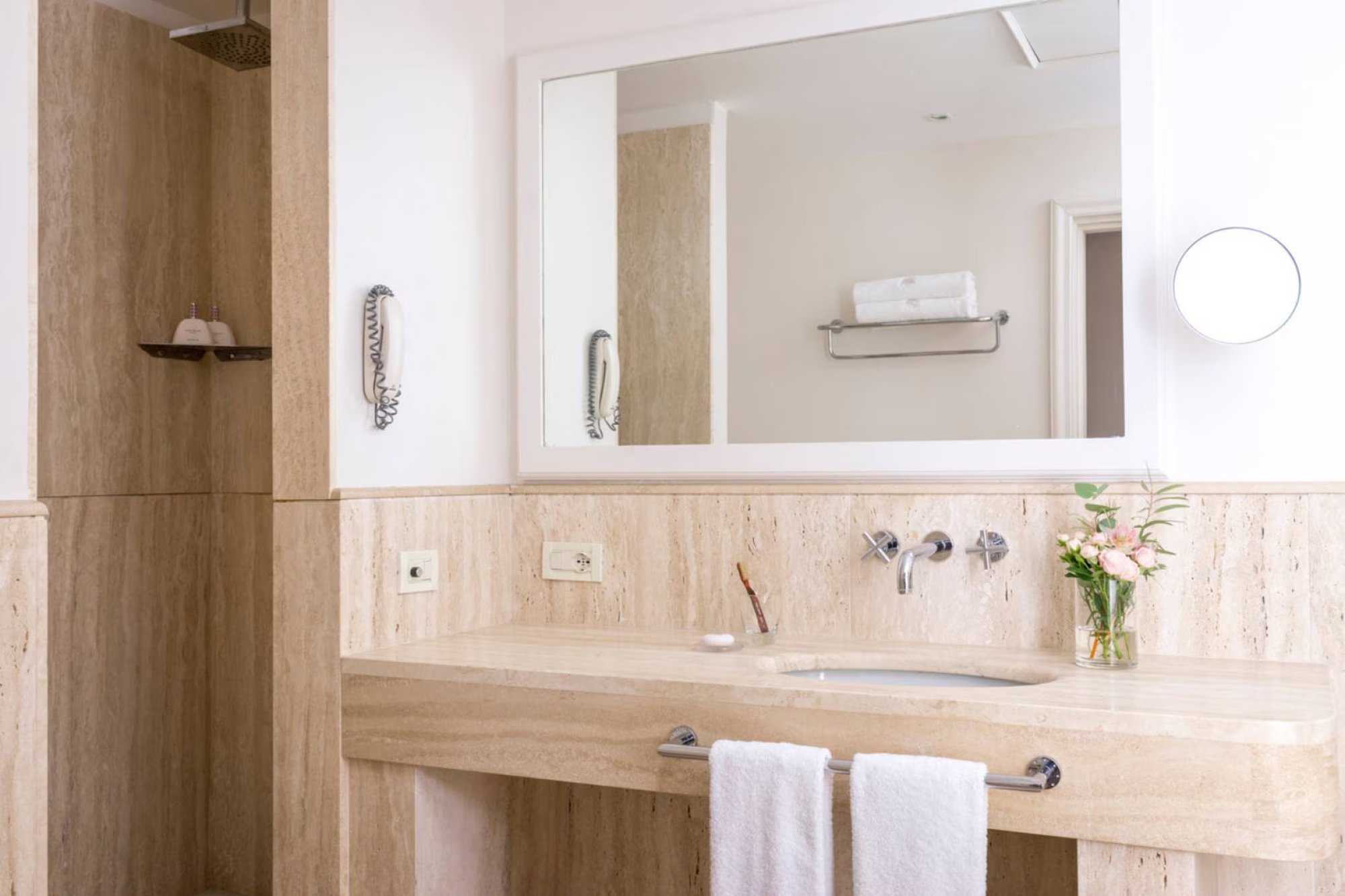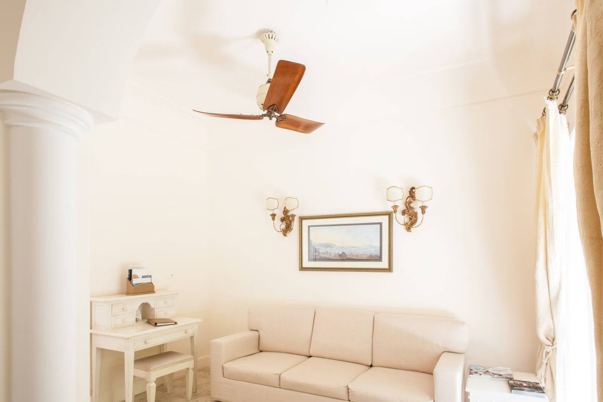 Toto nádherně zařízené apartmá ztělesňuje esenci Středomoří. Můžete se těšit na dechberoucí výhled na Neapolský záliv a prostorný interiér (45 m²) s manželskou postelí (nebo dvěma lůžky na vyžádání), elegantní koupelnou a špičkovým vybavením včetně HD TV s mezinárodními i lokálními programy, sejfu a pracovního stolu. Maximální kapacita: 3 dospělí.
