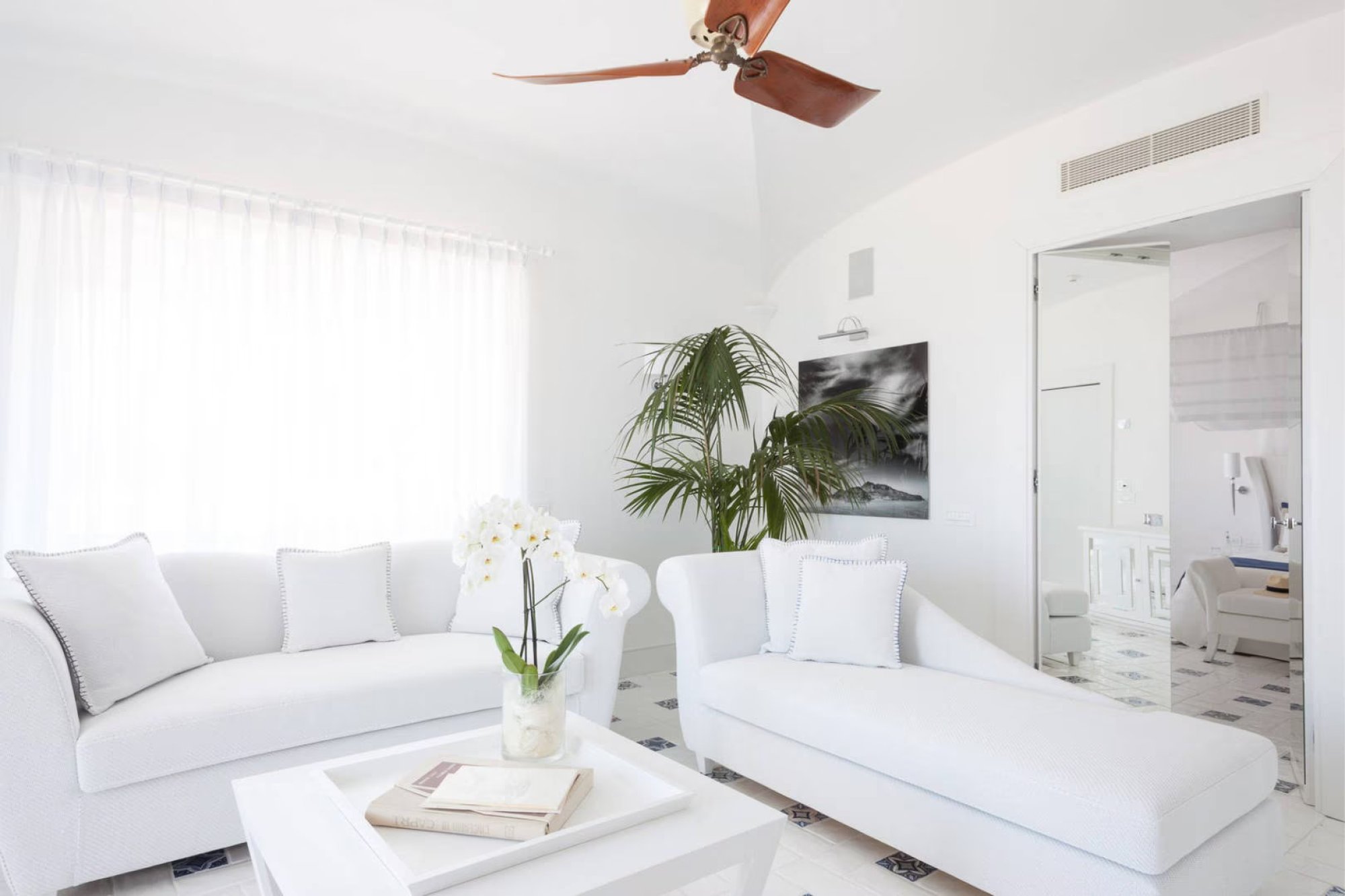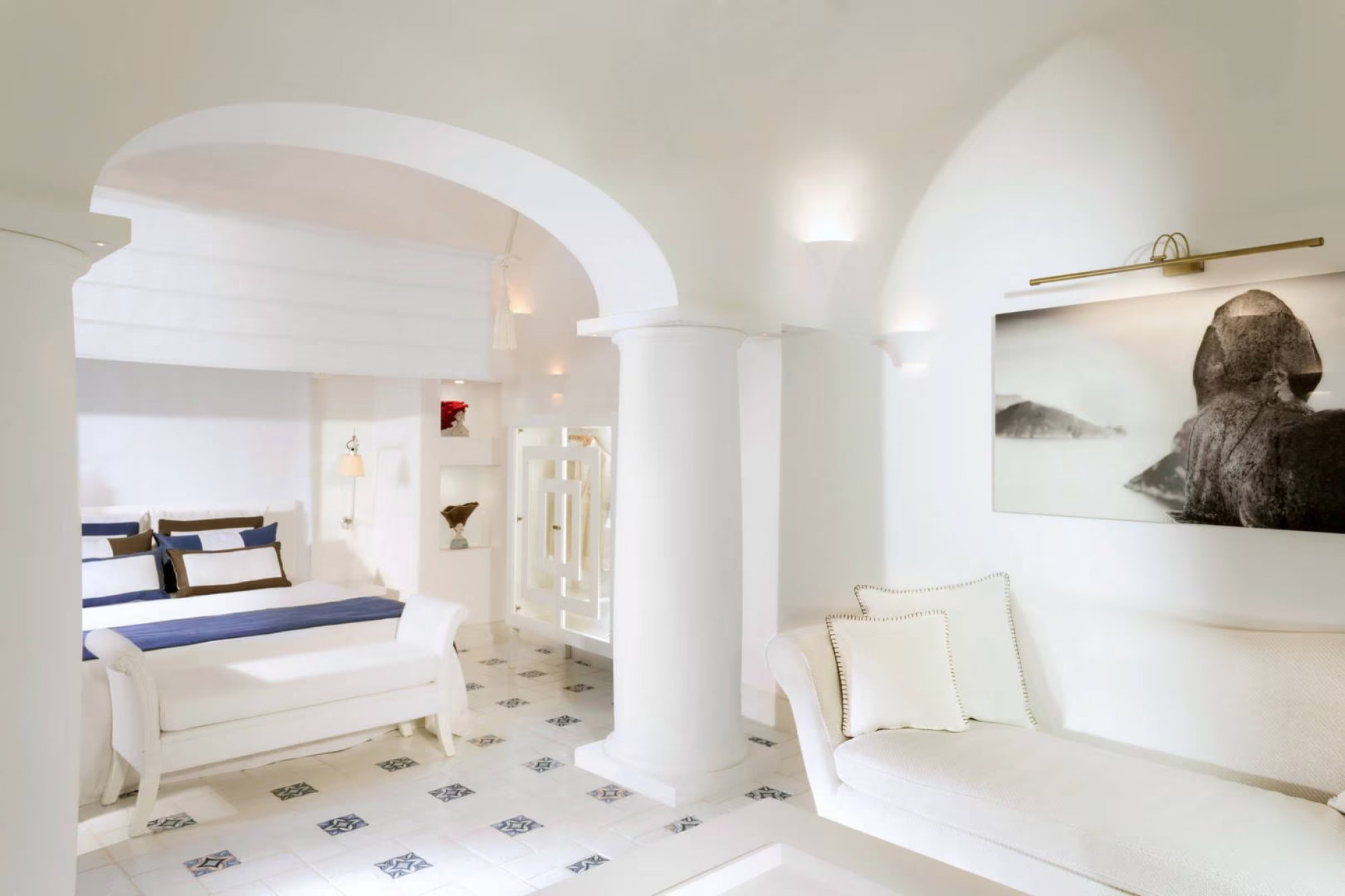 Pro ty, co si chtějí dopřát něco speciálního, je k dispozici toto stylové apartmá (41–56 m²) s oslnivým výhledem na městečko Anacapri. Elegantní interiér, který navrhla oceňovaná designérka Patricia Urquiola, nabízí vše, co potřebujete pro bezstarostný pobyt. Součástí vybavení apartmá je manželská postel, pracovní stůl, kávovar a příslušenství na přípravu čaje Smeg, sejf, HD TV, fén na vlasy Dyson a minibar s širokou nabídkou nápojů a občerstvení. Hosté ubytovaní v tomto apartmá mohou navíc využívat celou řadu výhod – gurmánské snídaně podávané v apartmá či v michelinské restauraci L'Olivo, jednu lázeňskou proceduru za pobyt (masáž pro muže a speciální péče o nohy Leg School pro ženy), služby Concierge a aplikaci pro služby osobního komorníka (pro plánování zážitků, dřívější check-in, rezervace apod.) a přístup do lázní Capri Medical Spa (od 16 let). Maximální kapacita: 3 dospělí.