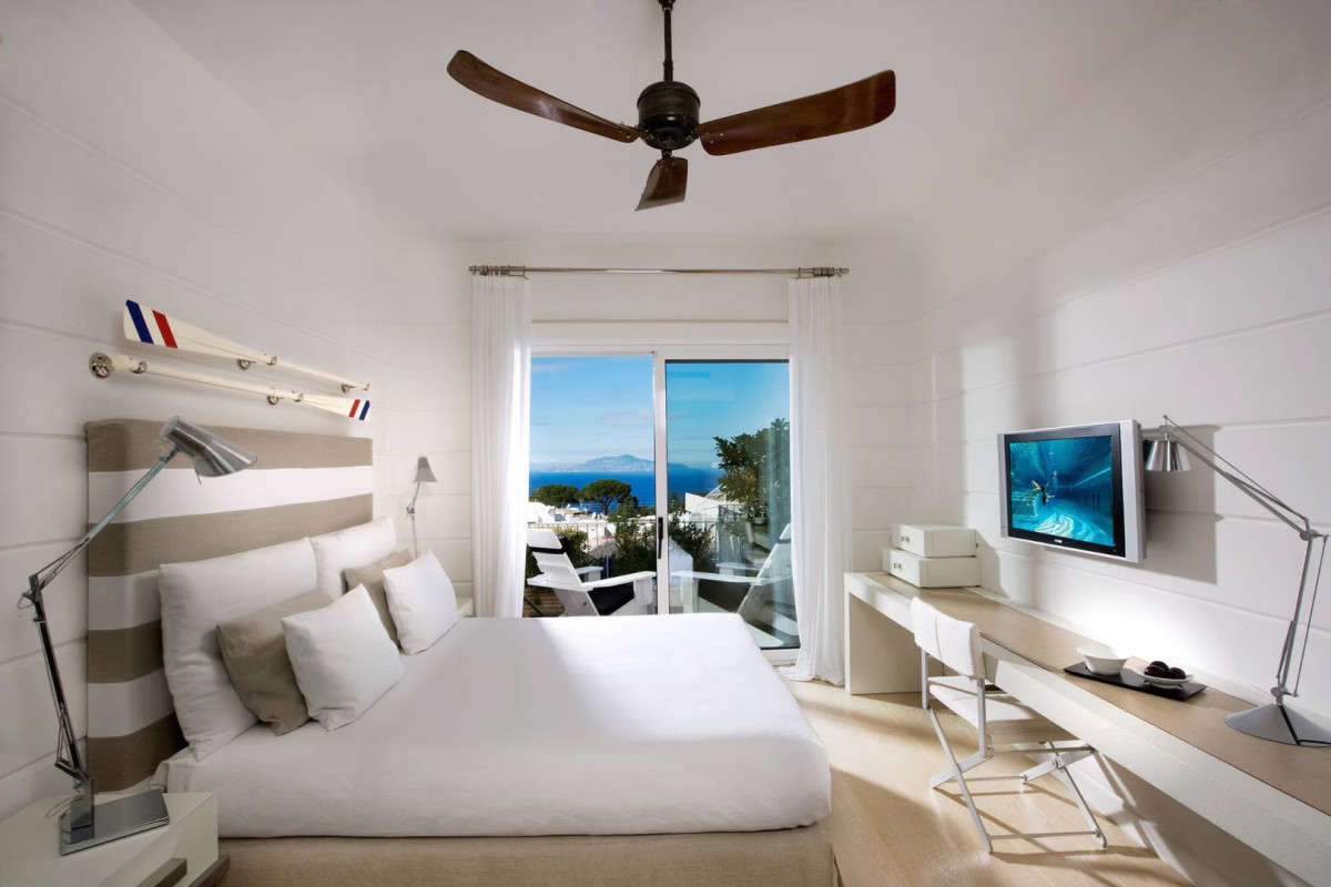 Tento prostorný pokoj (27 m²) s balkónem nabízí jedinečné pohodlí a dechberoucí výhled na Neapolský záliv. Interiér je zařízen v námořním stylu a evokuje nadčasové tvary a barvy rybářských lodí. Součástí pokoje je manželská postel (nebo dvě lůžka na vyžádání), elegantní mramorová koupelna, HD TV s mezinárodními i lokálními programy, sejf a pracovní stůl. Maximální kapacita: 2 dospělí.