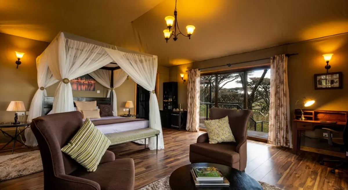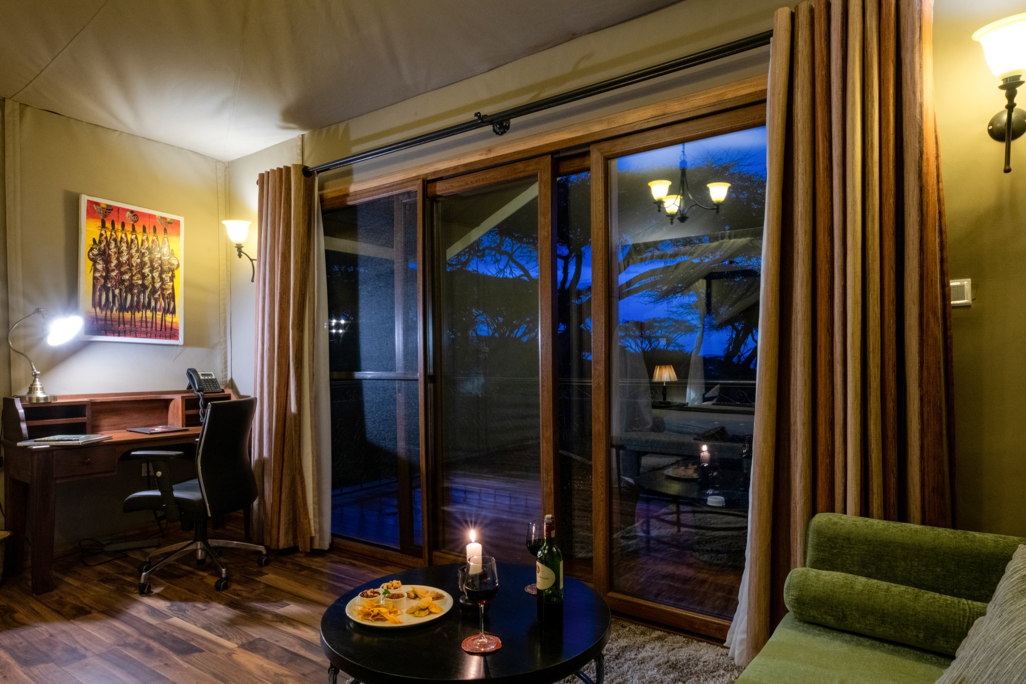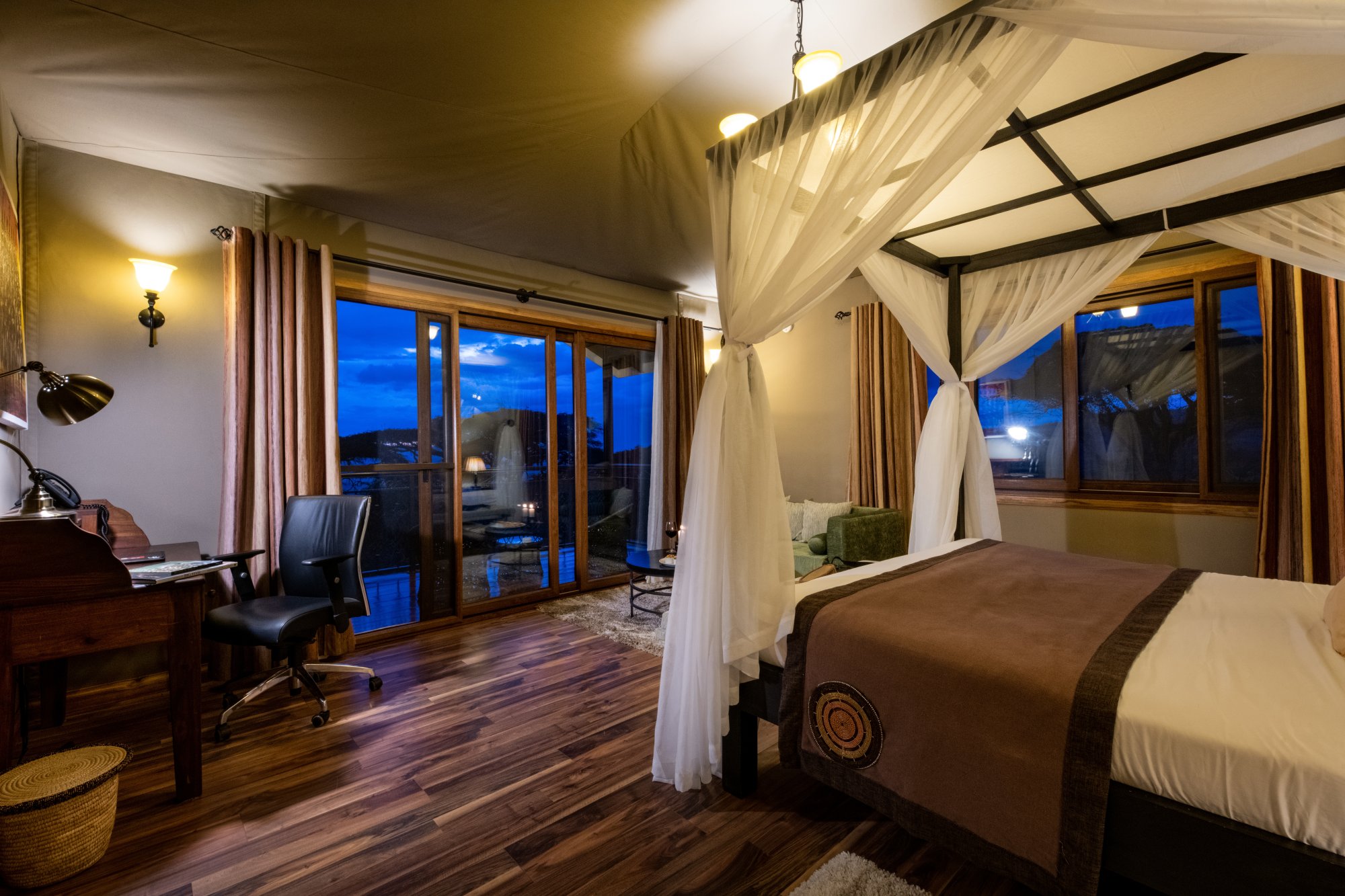 V tomto útulném pokoji s manželskou postelí se snoubí elegance a dokonalé pohodlí. Můžete se těšit na klidný spánek, inspirativní prostředí a nádherné výhledy na nezkrotnou krajinu Národního parku Ngorongoro.