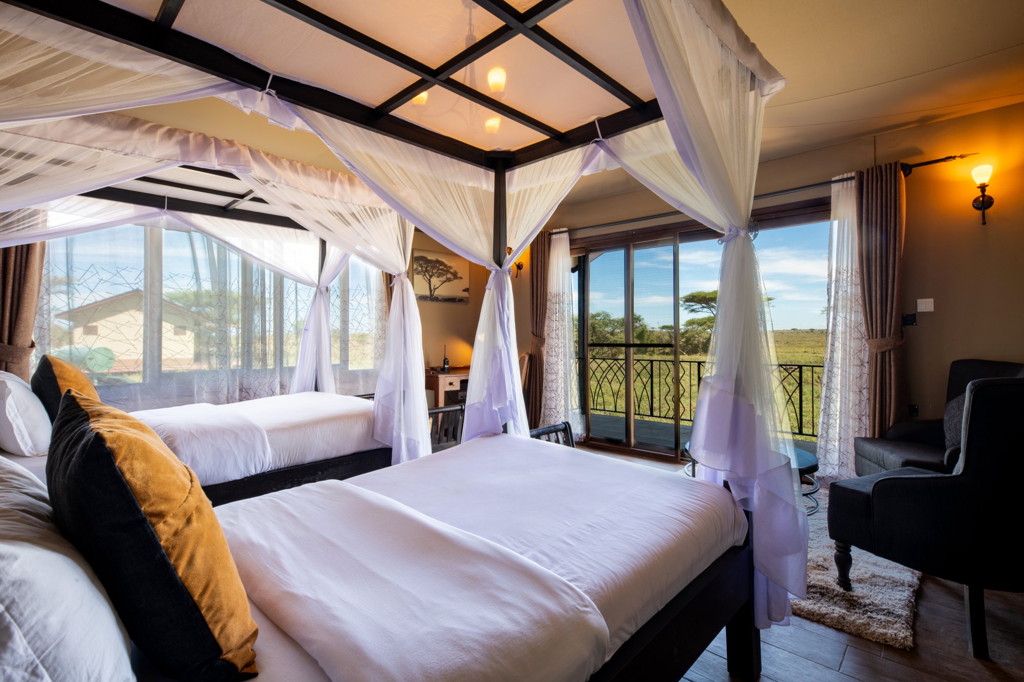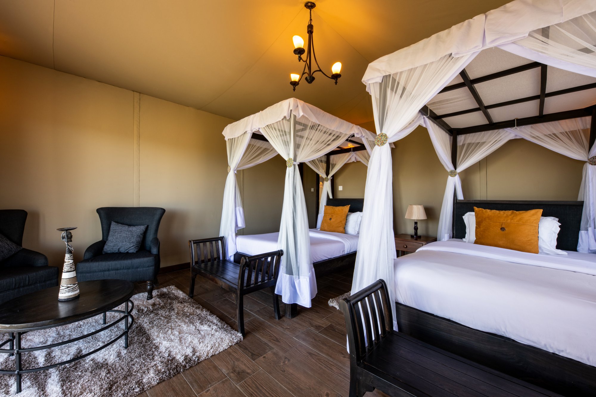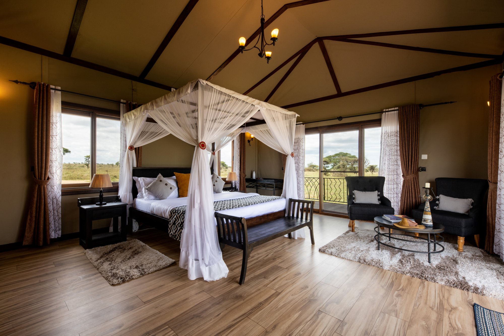 Kemp se pyšní exkluzivní kolekcí 18 apartmá navržených tak, aby poskytovala maximální pohodlí a propojení s přírodou. Všechna apartmá nabízejí panoramatický výhled na okolní krajinu a moderní zařízení pro bezstarostný pobyt. Kromě toho se můžete těšit na jedinečné kulinářské zážitky, které kombinují místní chutě i mezinárodní kuchyni. K dispozici je špičková restaurace s barem i soukromé stolování. Kromě toho se můžete těšit na vzrušující aktivity jako například vyhlídkový let balónem či návštěvu masajské vesnice. Propojení luxusního ubytování a služeb se syrovou krásou africké krajiny je zárukou nezapomenutelných vzpomínek.