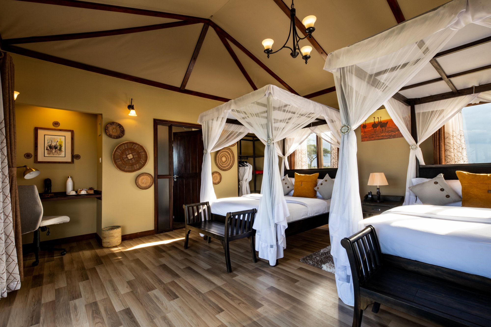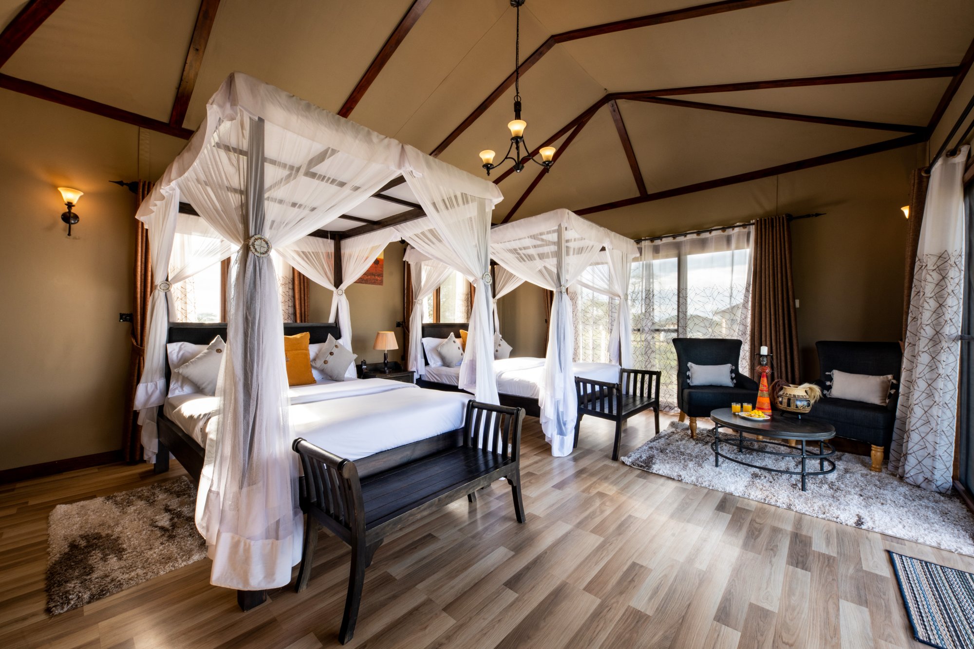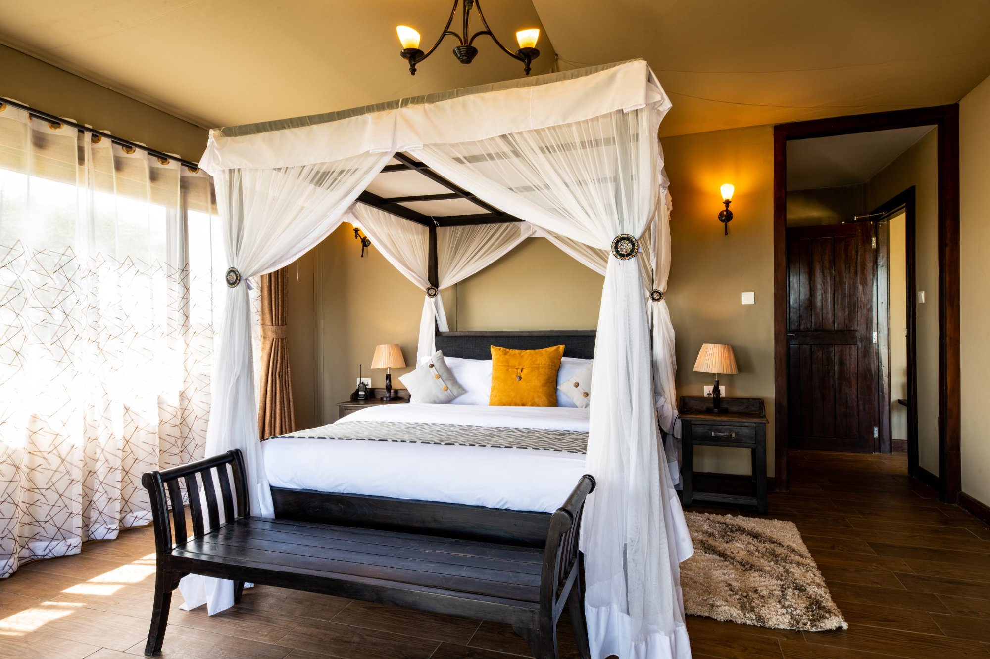 Kemp se pyšní exkluzivní kolekcí 18 apartmá navržených tak, aby poskytovala maximální pohodlí a propojení s přírodou. Všechna apartmá nabízejí panoramatický výhled na okolní krajinu a moderní zařízení pro bezstarostný pobyt. Kromě toho se můžete těšit na jedinečné kulinářské zážitky, které kombinují místní chutě i mezinárodní kuchyni. K dispozici je špičková restaurace s barem i soukromé stolování. Kromě toho se můžete těšit na vzrušující aktivity jako například vyhlídkový let balónem či návštěvu masajské vesnice. Propojení luxusního ubytování a služeb se syrovou krásou africké krajiny je zárukou nezapomenutelných vzpomínek.