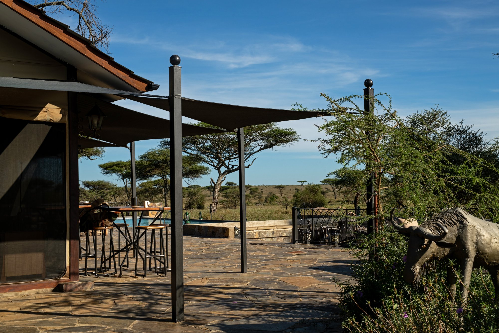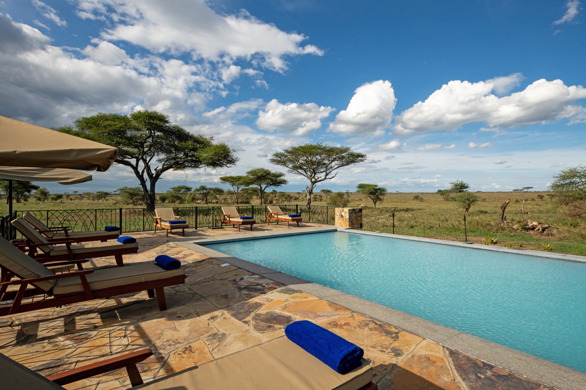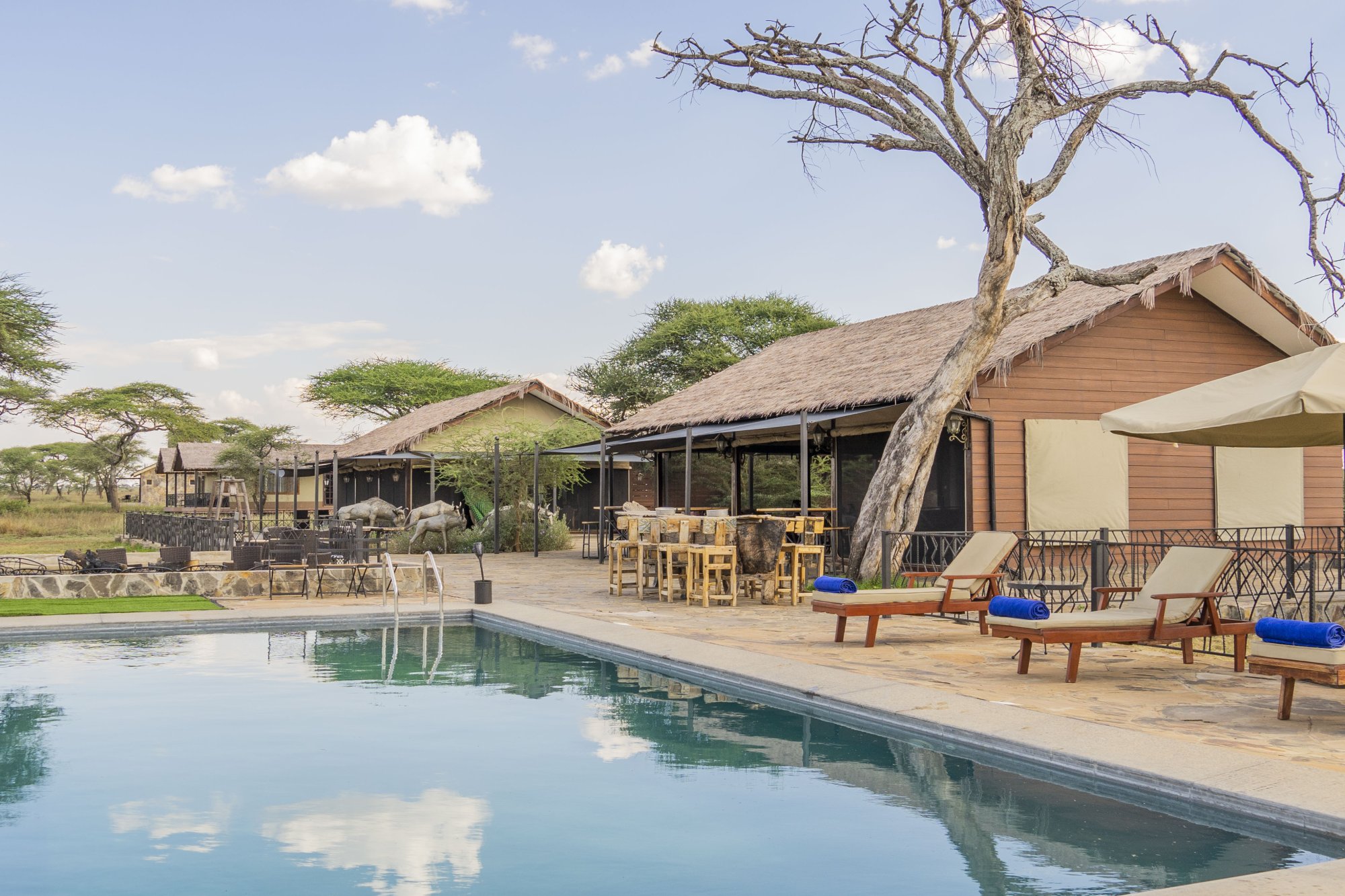 Součástí kempu Serengeti Sametu je společný venkovní bazén a k dispozici jsou také lázeňské procedury na vyžádání.