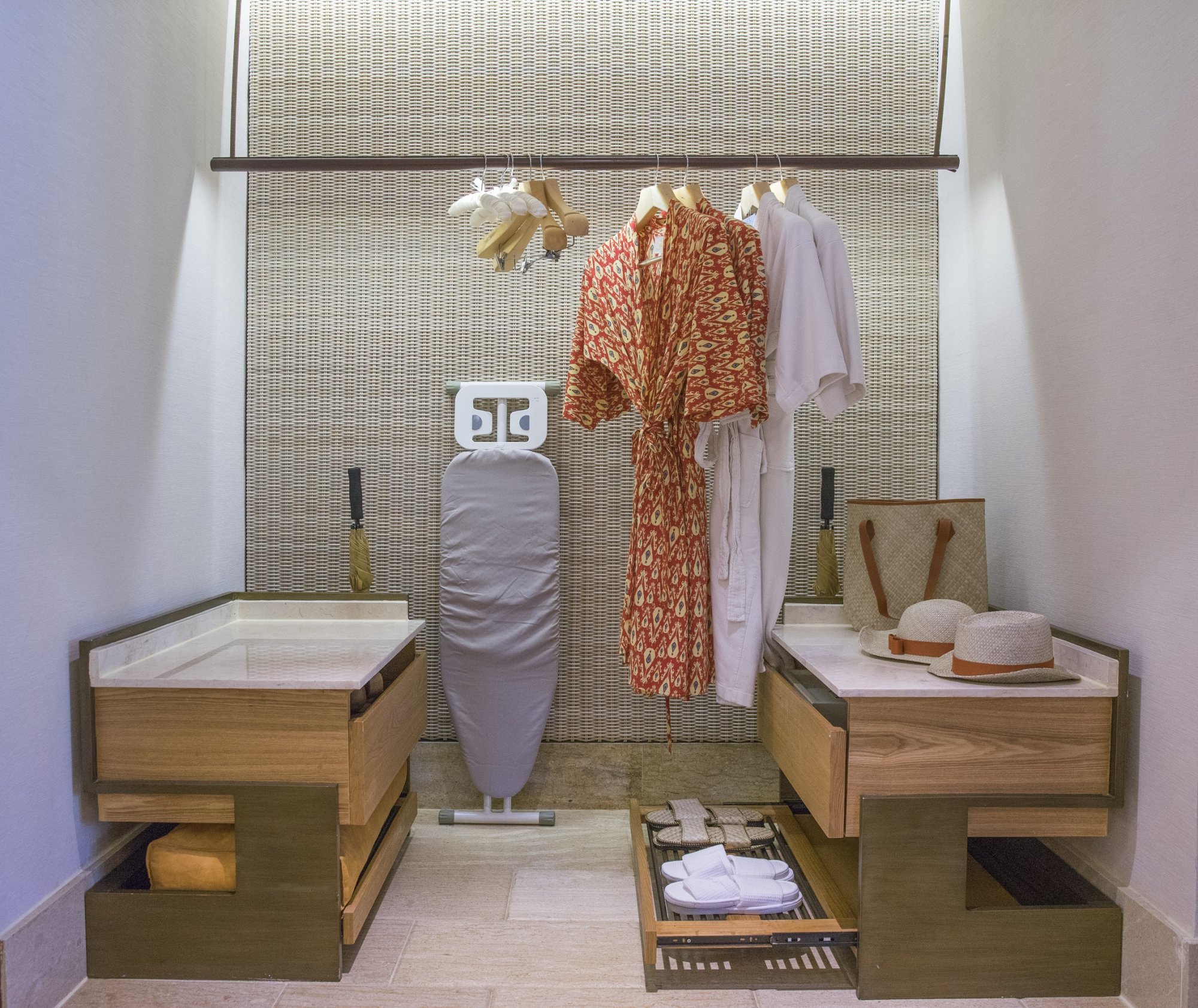 Součástí vybavení všech pokojů a vil je: luxusní přikrývka a ložní prádlo Frette, klimatizace, šatna, zvukotěsná okna, USB porty, oddělená vana a sprcha, dvě umyvadla, osvětlené kosmetické zrcadlo, koupelnové produkty, fén na vlasy, župany, pantofle, pohovka a křeslo, budík, trezor na pokoji, pracovní stůl s elektrickou zásuvkou, žehlička a žehlicí prkno, pokojová služba (24 hodin denně), balená voda zdarma, příslušenství na přípravu čaje i kávy, kohoutek s vařící vodou, minibar (za poplatek), mini lednička, příbory, nádobí a sklenice, bezdrátový telefon s hlasovou schránkou, bezplatné bezdrátové připojení k internetu, večerní služba rozestýlání postele, DVD přehrávač s filmy k zapůjčení, prémiové filmové kanály (poplatek za shlédnutí), rádio, kabelová / satelitní televize se CNN a dalšími mezinárodními kanály.