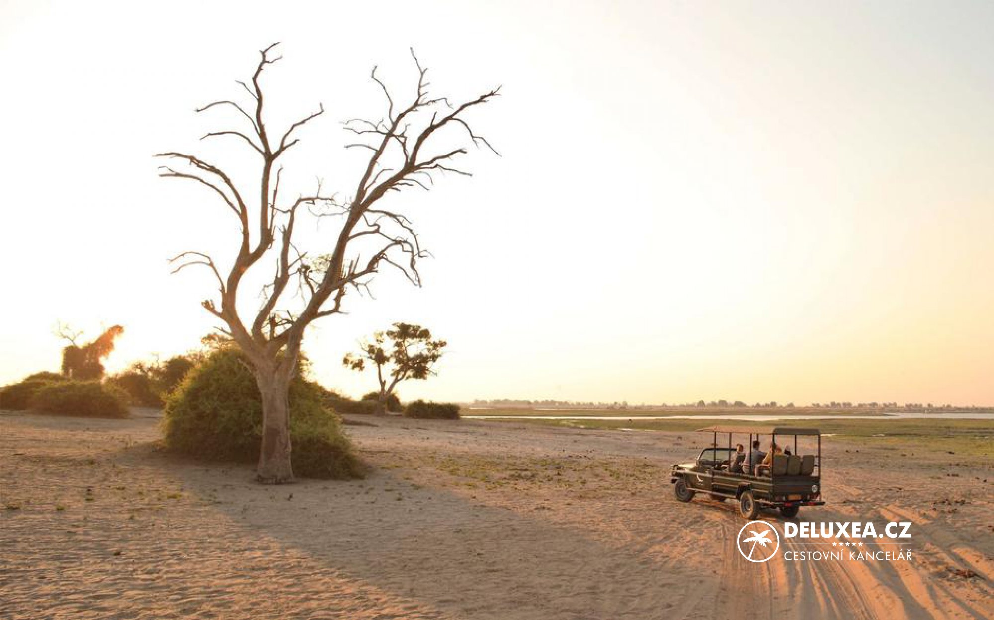 „Dramatické ubytování v Safari Lodge na břehu řeky Chobe.“