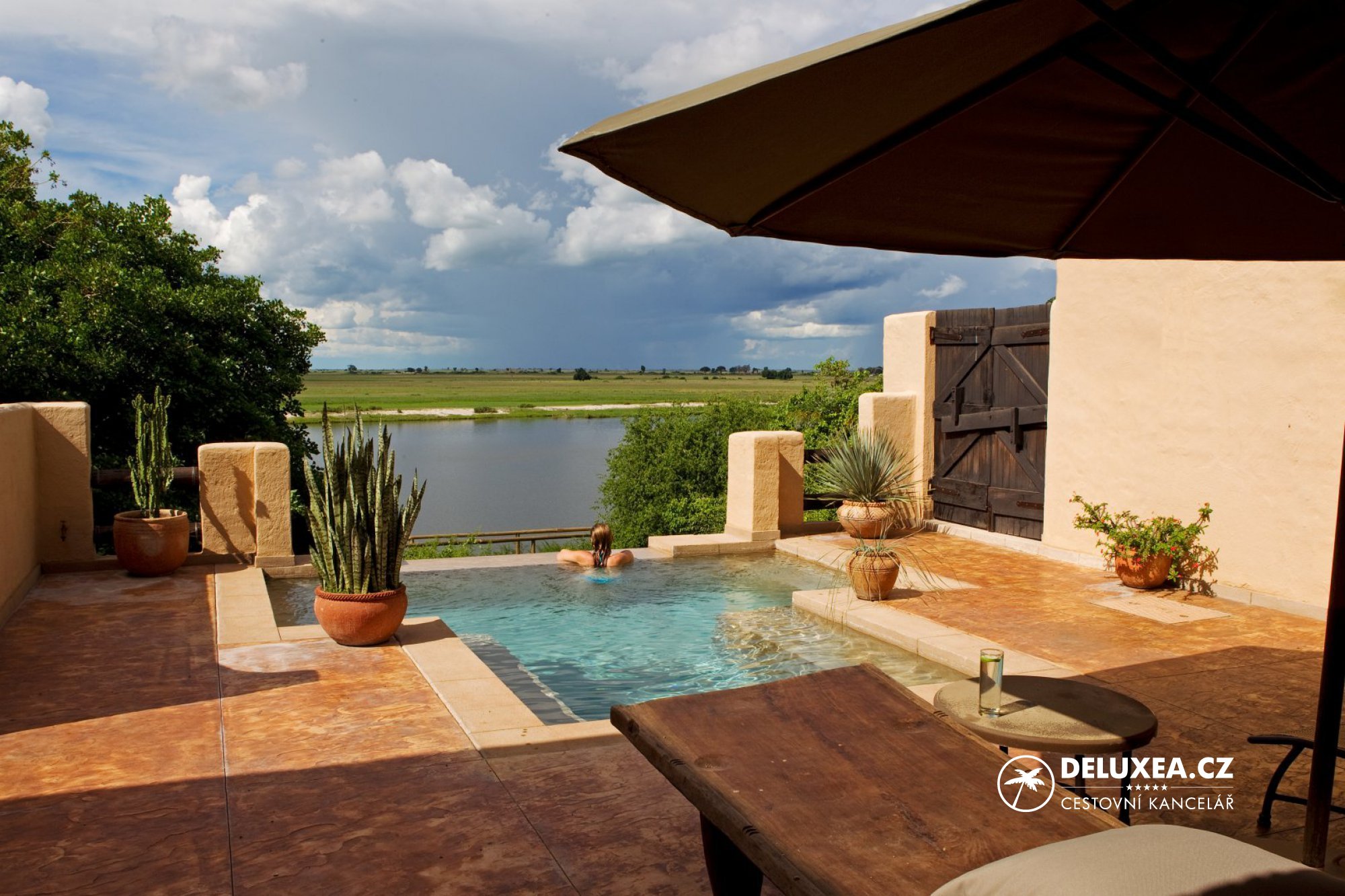 S výhledem na rozlehlé pastviny a vody řeky Chobe si dopřejete překrásné okamžiky v safari ubytování, které zahrnuje prostorné suity s vlastními bazénky a verandami, stejně jako ručně zdobený týkový nábytek, klimatizaci, stropní ventilátory a vlastní koupelnu.