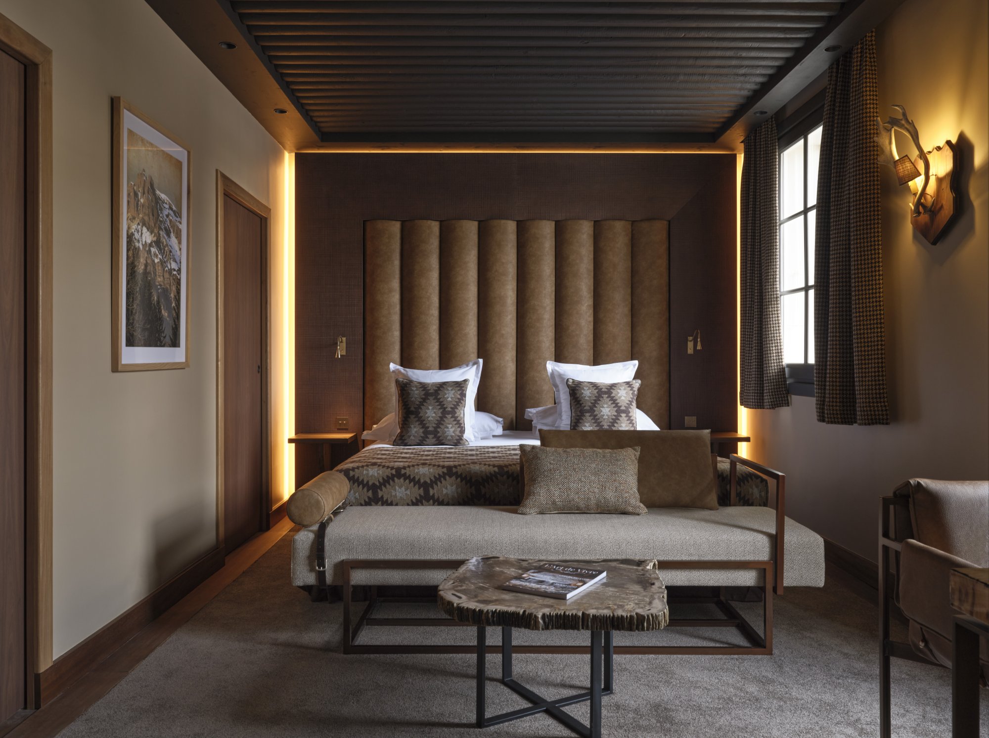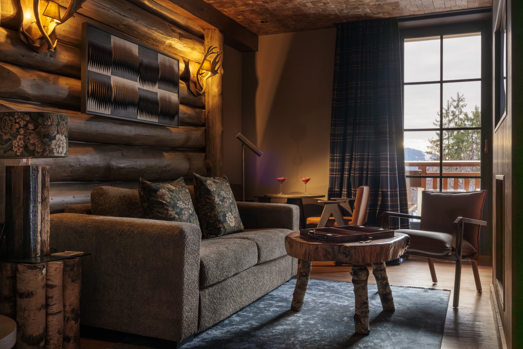 V interiéru dominují dřevěné prvky, kožené potahy, kožešinové přehozy, neotřelé vzory a paroží. Kulisy utváří dechberoucí alpské scenérie, ať už se jedná o zasněžené střechy, nebo horské štíty.