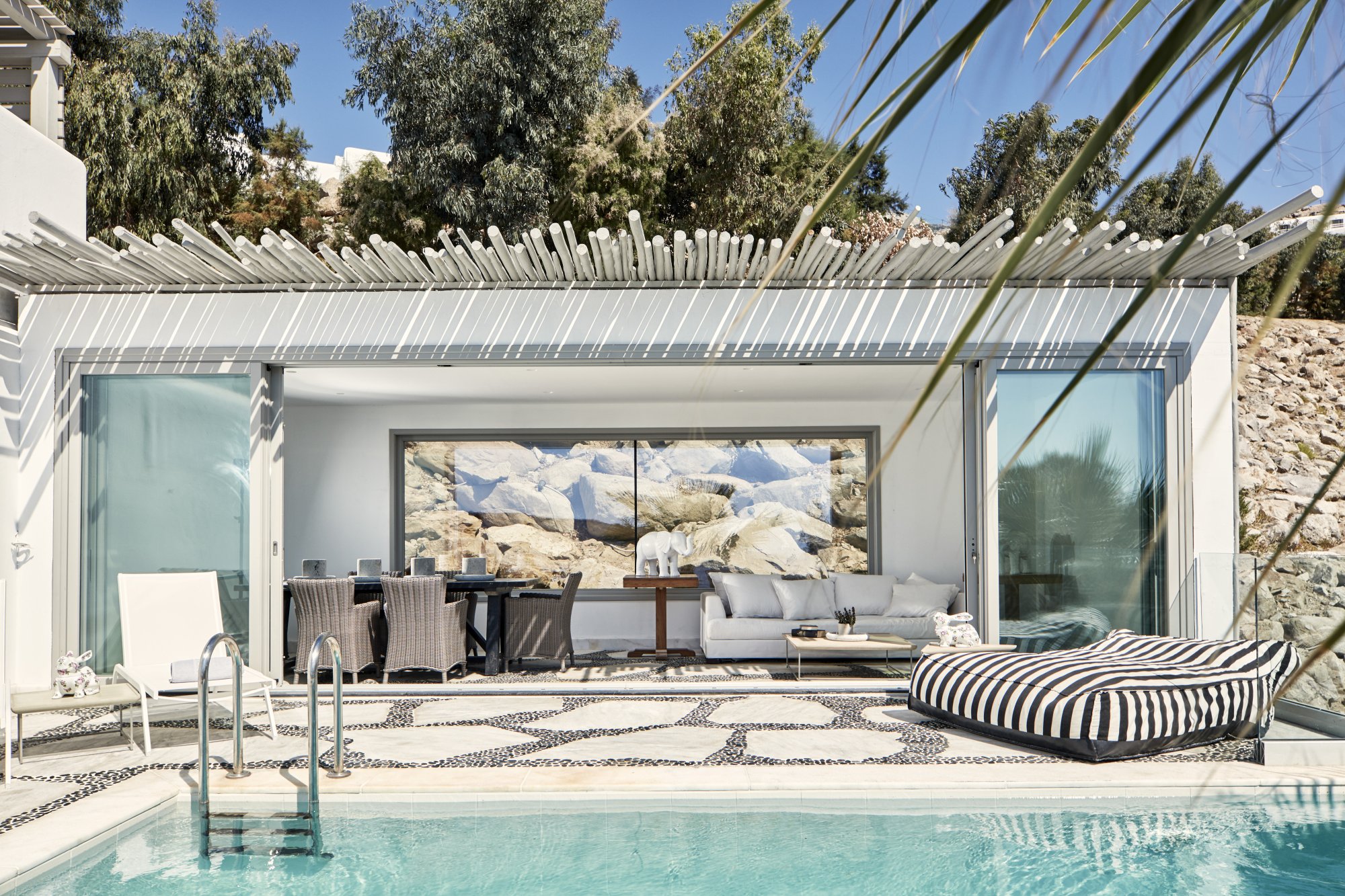 Přijďte si odpočinout, posilnit se a osvěžit lahodným drinkem do tohoto stylového baru, jenž se nachází přímo u bazénu. Jsou pro vás připravena pohodlná lehátka se slunečníky a snovým výhledem na azurovou hladinu Egejského moře.