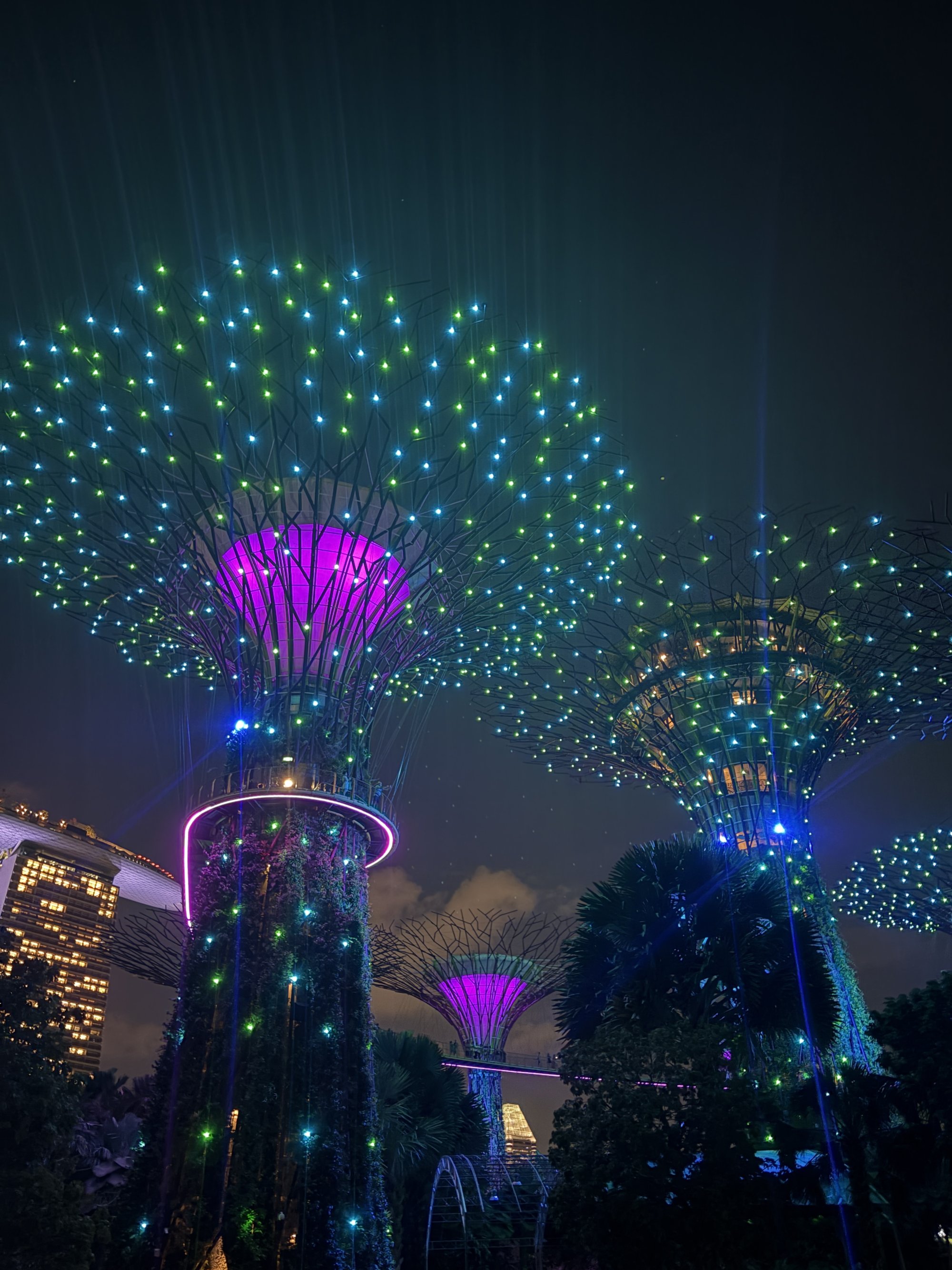 - Gardens by the Bay – futuristické „stromy“, které večer svítí