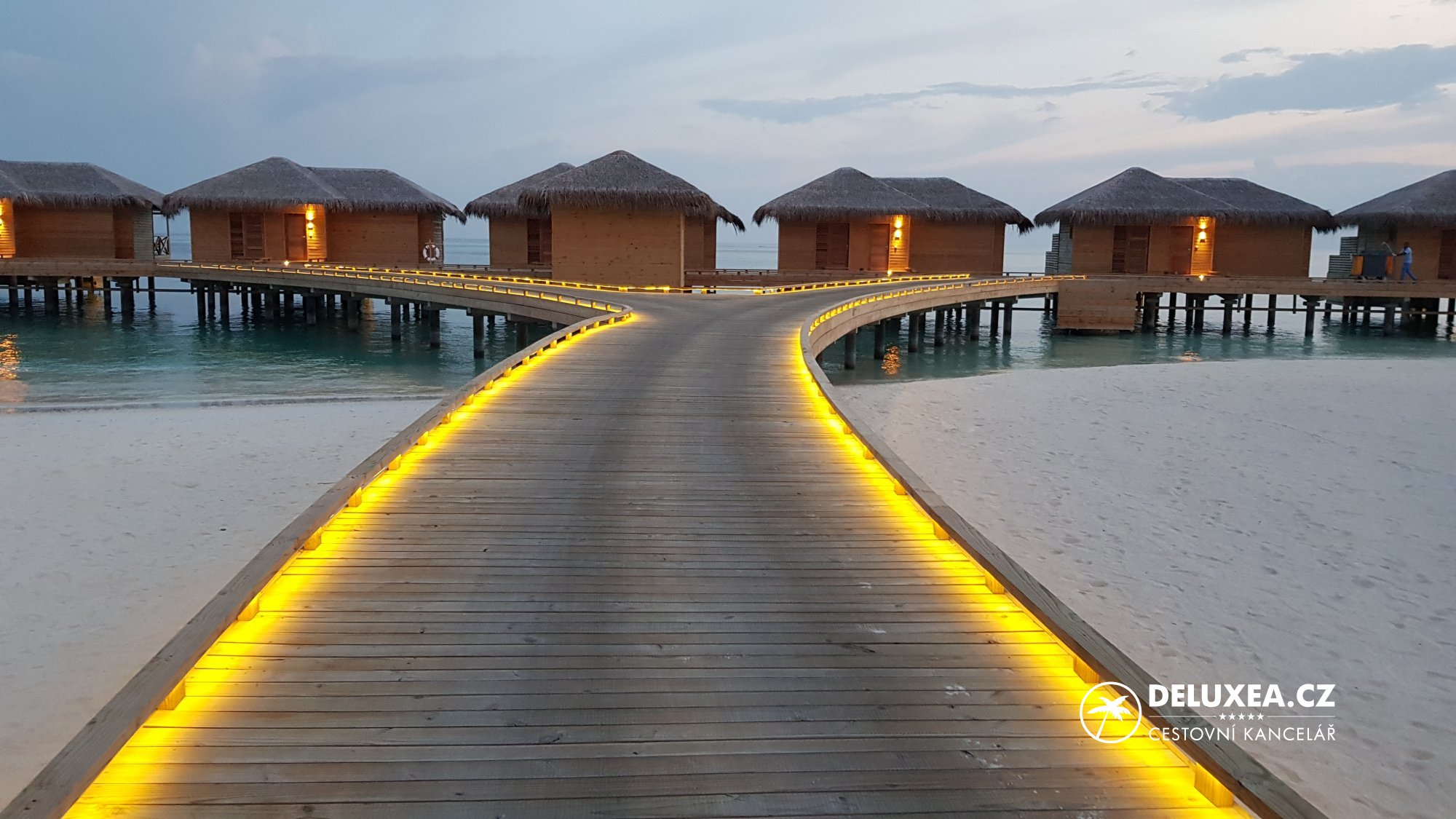 Po příjezdu do hotelu jsme byli přivítaní šampaňským a poměrně rychle ubytování v nadvodní vile Aqua Suite with pool, což je druhá nejvyšší kategorie vilek. Pokoje jsou designově stylizovány do přírodních tónů s výraznými prvky dřeva. Já osobně jsem se cítil příjemně a nebojím se říci, že jsou pokoje útulné. Nikdy jsem si neřekl, že potřebuji na dovolenou vlastní bazén, ale rozhodně jsem si nestěžoval – to zejména když dva dny bylo zataženo s častými přeháňkami a i tak jsem mohl trávit čas v bazénu na terase u vilky. Více jak 90 % vilek v hotelu je situovaných nad vodou, takže zejména pokud oceníte rychlý přístup do moře, určitě budete potěšeni. Ostrov obecně patří spíše k menší a nic tak není příliš daleko. Během pobytu jsme tak střídali během dne pobyt na pláži a na vlastní terase.