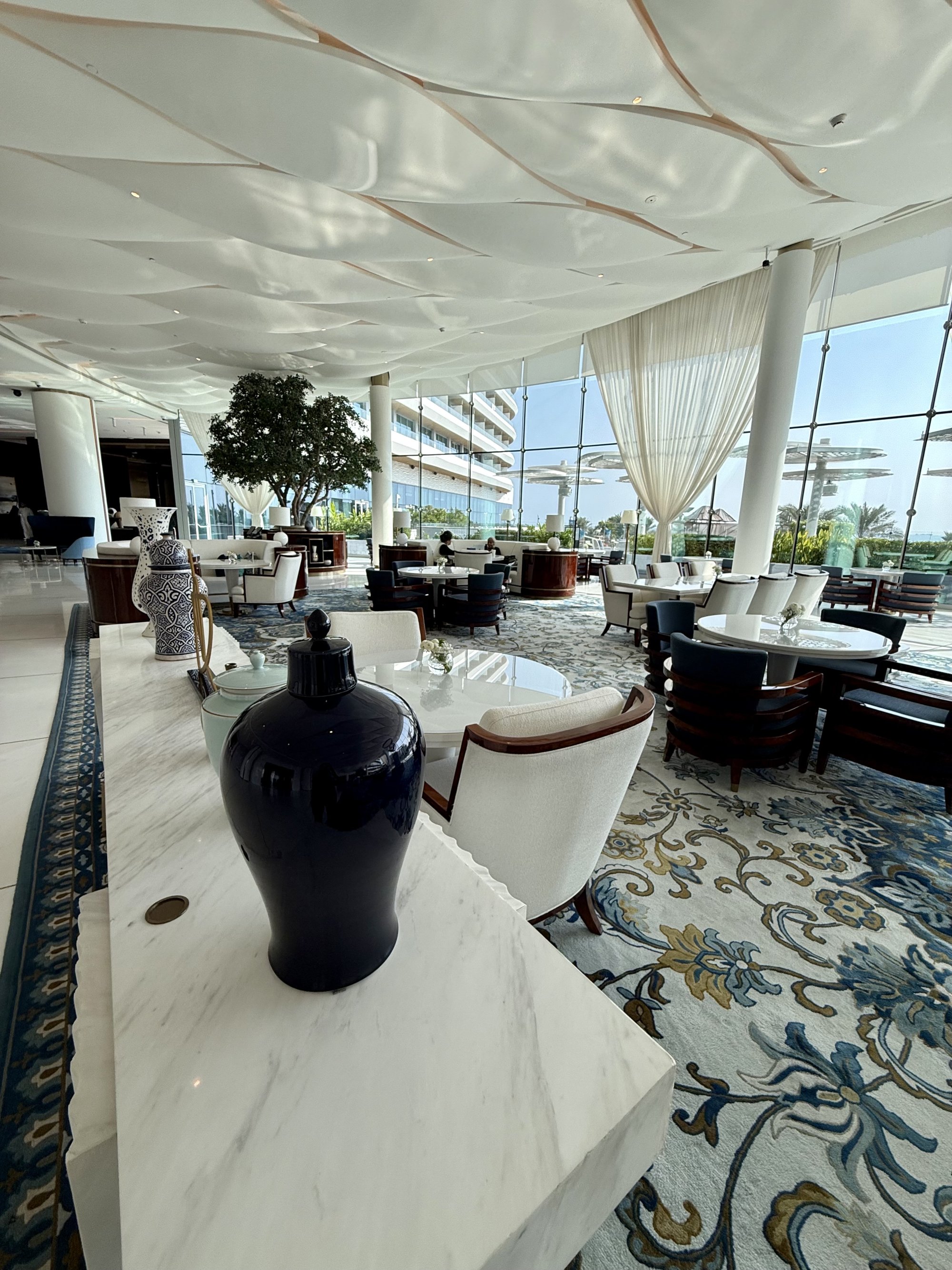 Další noci jsme strávily v hotelu Waldorf Astoria Lusail, který nabízí krásnou pláž, elegantní venkovní areál a velmi příjemnou atmosféru. Snídaně se zde podávaly formou bufetu s možností objednávek à la carte a probíhaly v restauraci situované jen pár kroků od bazénu a moře.