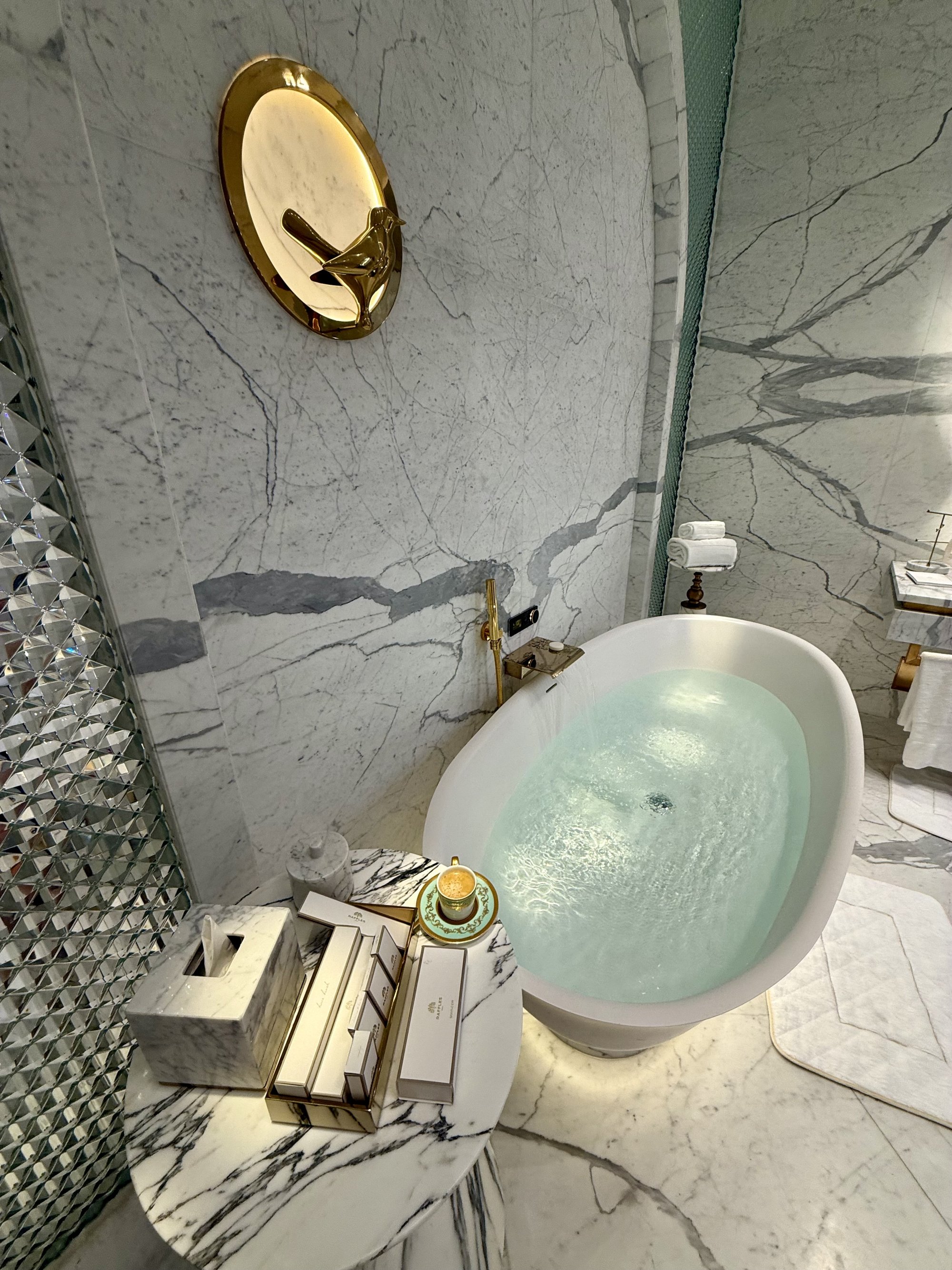 Prohlédly jsme si všechny dostupné kategorie pokojů a ocenily vysoký standard služeb, který je pro značku Waldorf Astoria typický. Kousek od hotelu (pěší chůzí 5minut) se nachází luxusní nákupní centrum plné obchodů od nejvyhlášenějších značek.