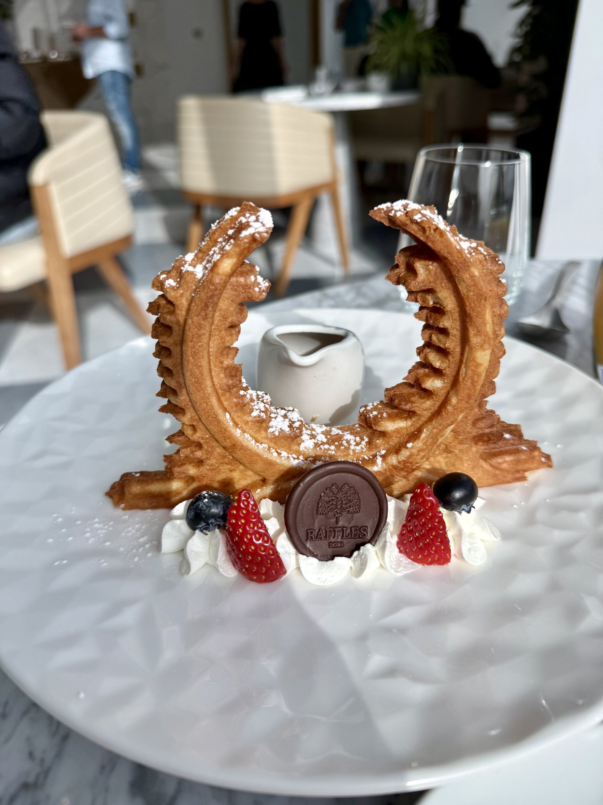 Snídaně v hotelu Raffles Doha byly skutečným gastronomickým zážitkem. Probíhaly formou à la carte s možností doplnění menším bufetem. Vynikající ovoce, perfektní servis a ikonické Raffles wafle ve tvaru hotelové budovy patřily k nezapomenutelným momentům pobytu.